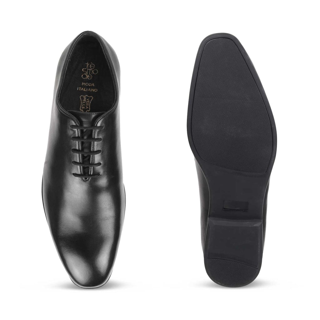 Formal dressing was never so dapper before The Noxford Black Oxford Laceups for men. Handcrafted in Italian leather, these oxford laceups are a must-have for a an up to date stylish wardrobe. The TPR sole makes this pair sturdy, durable and comfortable. Style Tip- Pair these oxfords with a full suit for power packed look.