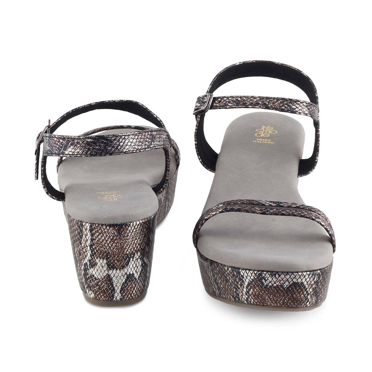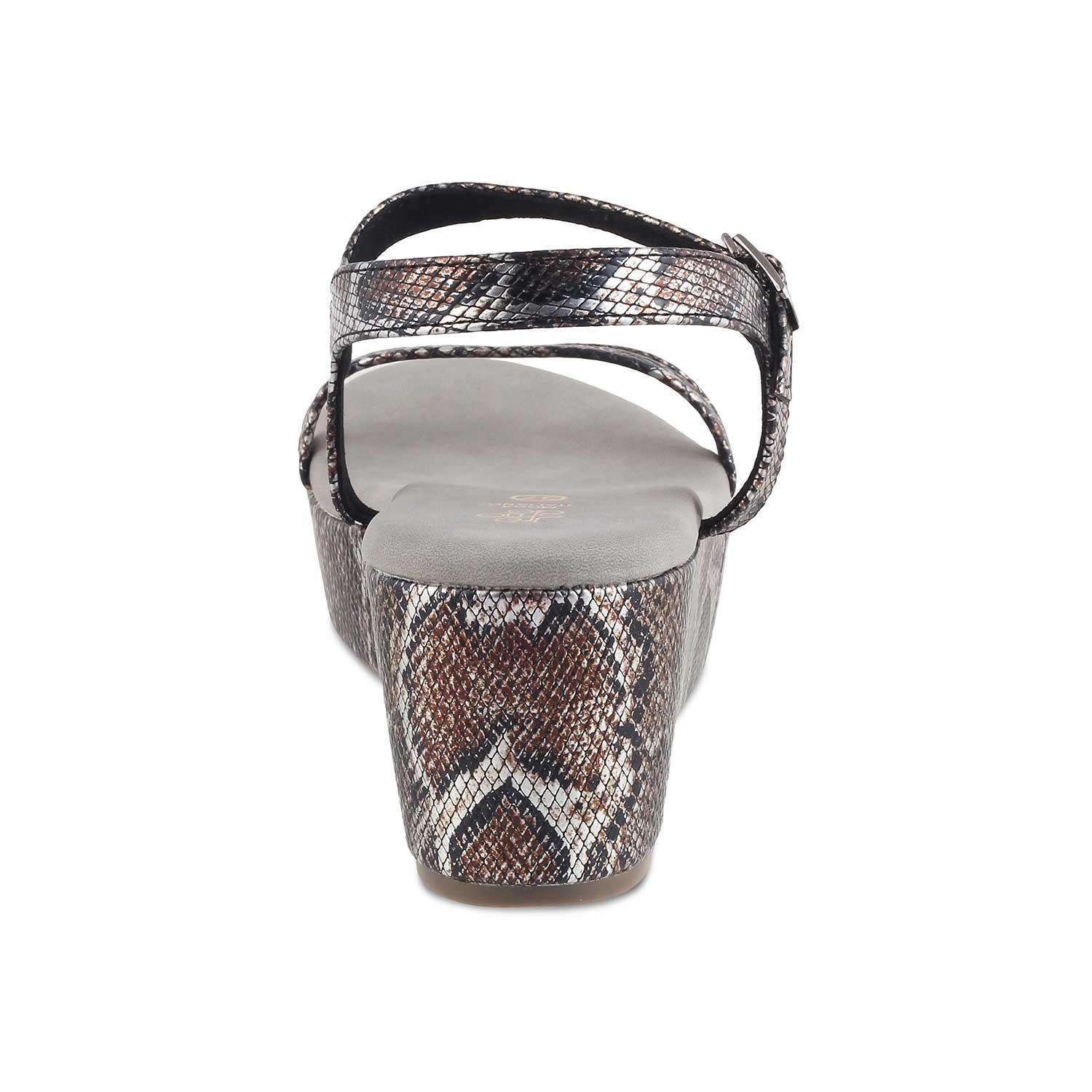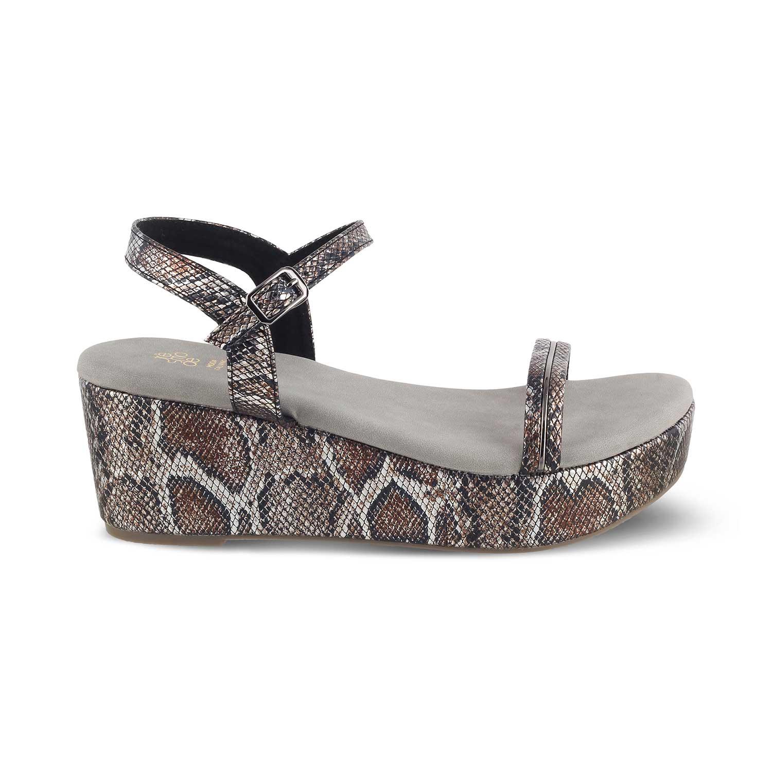 Make a striking fashion statement in our Anger pewter women’s wedge heel sandals. Featuring a chic snake-pattern design, these vegan-friendly wedges will give your look an instant lift. Step out in confidence and make a fashion statement while keeping your feet happy and comfortable. Pair them with a black and white polka-dotted dress for a party.