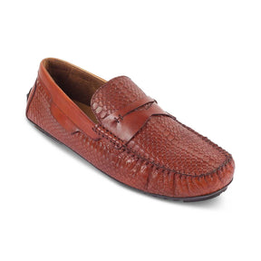 Elevate your style game with our Argon tan leather driving loafers for men. Featuring a croc-embossed pattern and crafted in premium leather, these loafers are for the modern man. Upgrade your everyday style by adding these loafers to your collection. Whether it is a weekend getaway or a casual day at the office, these loafer shoes will surely upgrade your look.