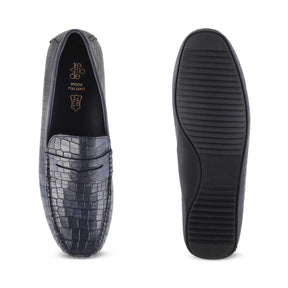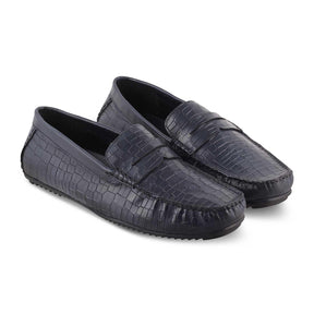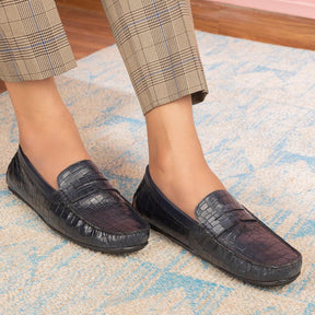 Look sharp by adding our Avyo blue loafers to your collection! These loafers are crafted in Italian leather and a croc-pattern design, which adds a modern touch to this classic pair. Style these loafers with a linen baby blue shirt and grey trousers.