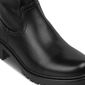 Make a style statement with our Baye black women’s boots. Created from PU material to offer extreme comfort, these boots will be your go-to this winter season. Get ready to redefine your style by adding this pair to your collection. For a versatile look, pair these boots with a white top, a black jacket, and blue straight-leg denims.