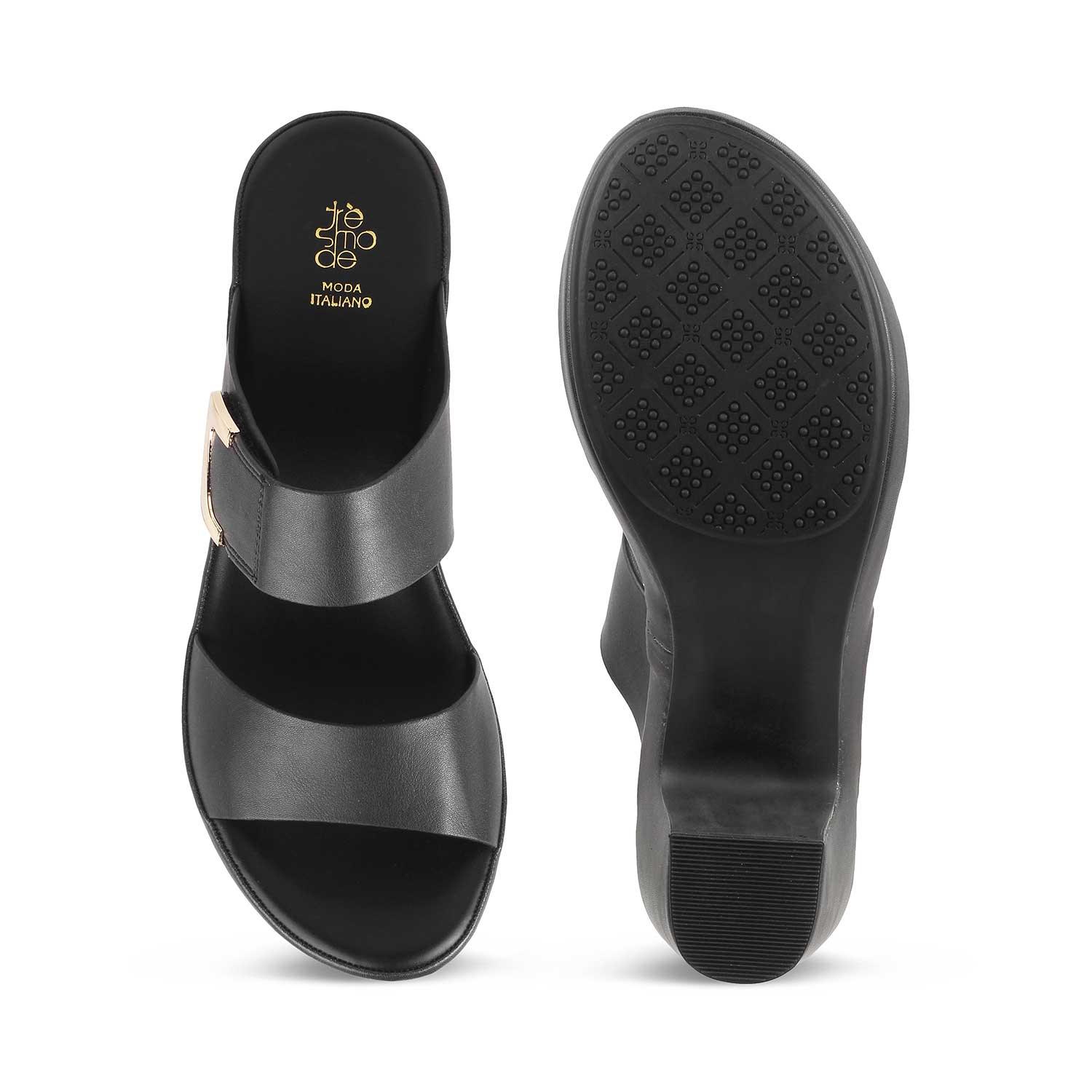 The Bona Black Women's Casual Block Heel Sandals Tresmode