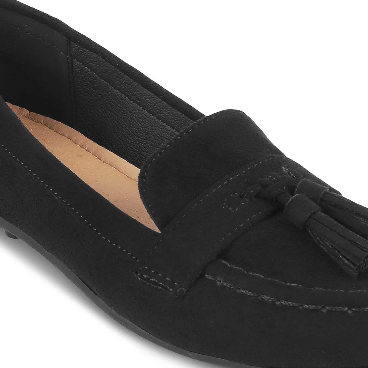 Our Bonum Black women's loafers will make a chic addition to your wardrobe. Featuring tassels and created from premium suede leather, these loafers are a must-have for a stylish comfortable look. This pair will add an elegant touch to your style. For a casual outing, style these loafers with a white floral top and black pants.