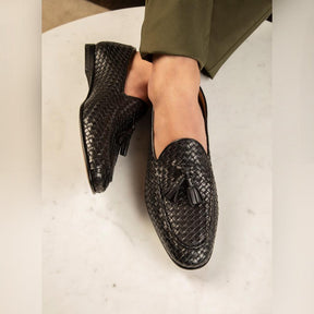 Get yourself the Brucato black men’s handcrafted leather tassel loafers. Inspired by traditional weaving patterns, this woven pair features tassels that make these loafer shoes look timeless. This luxurious pair merges sophistication with style quite effortlessly!
