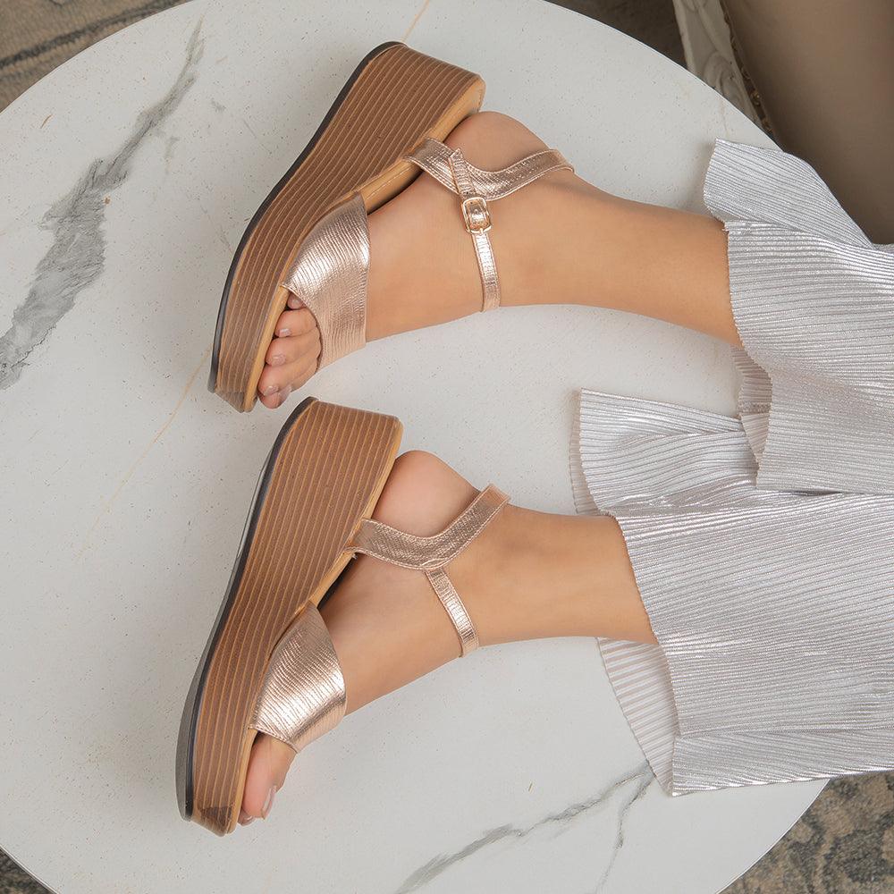 The Cannes Champagne Women's Dress Wedge Sandals Tresmode