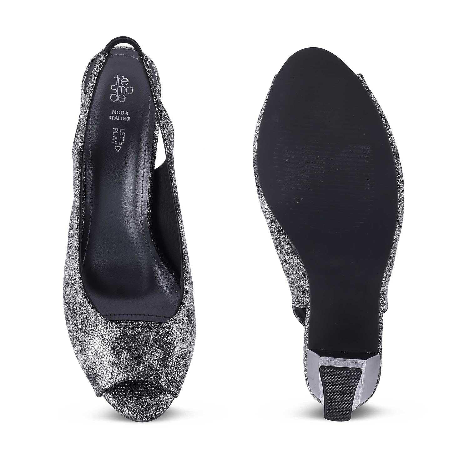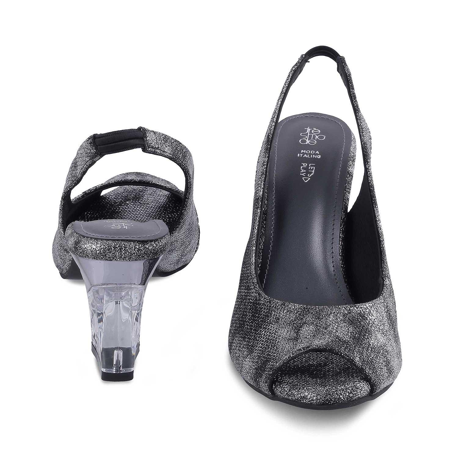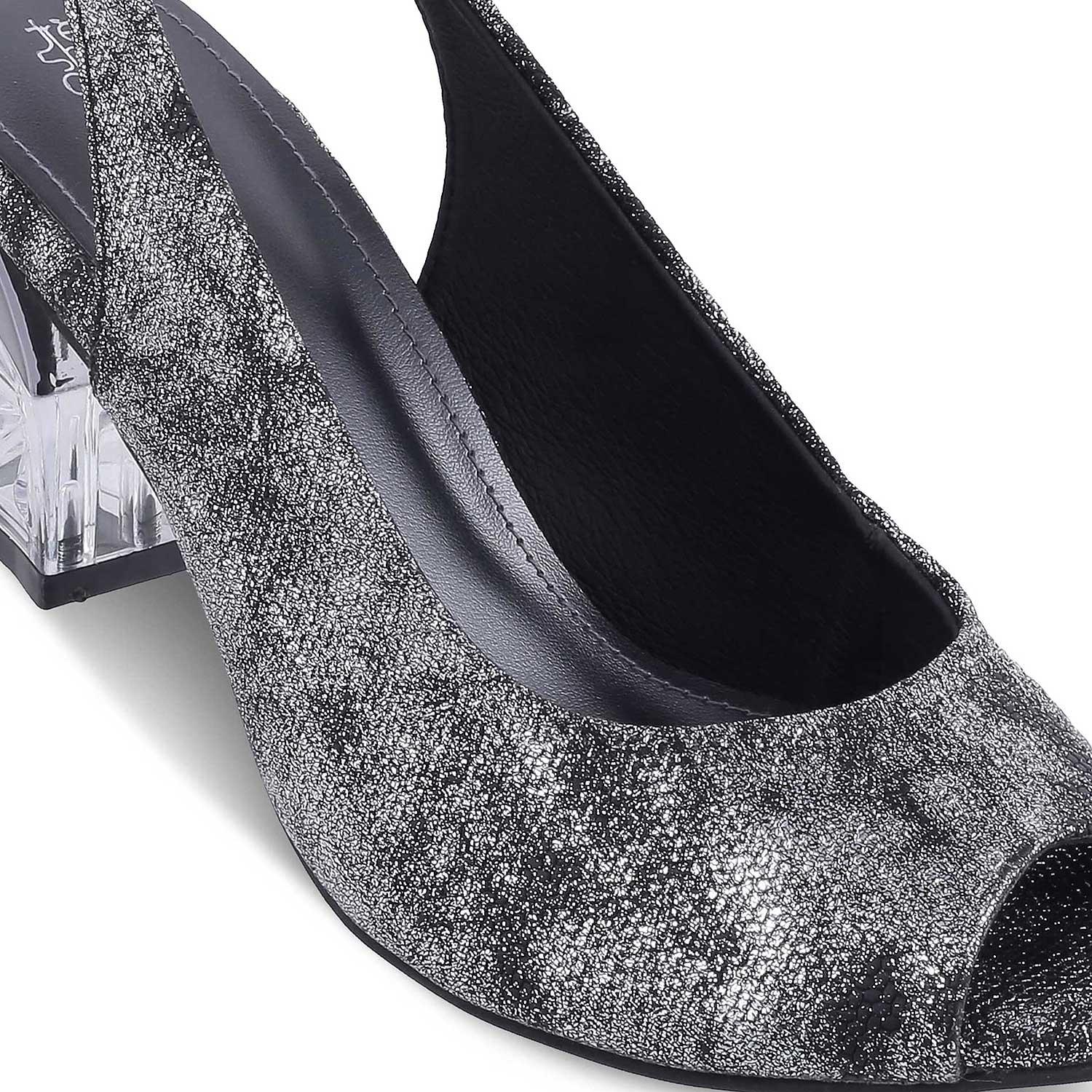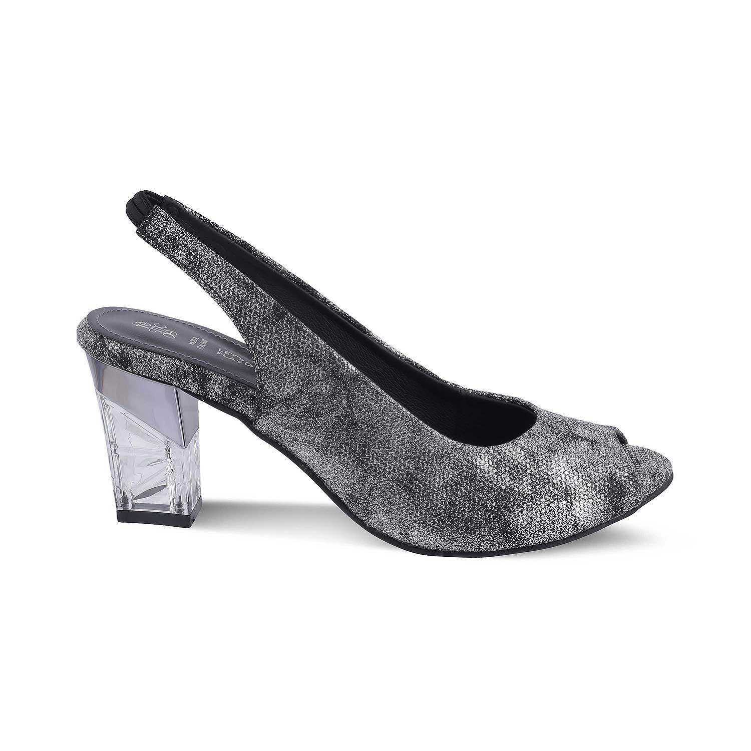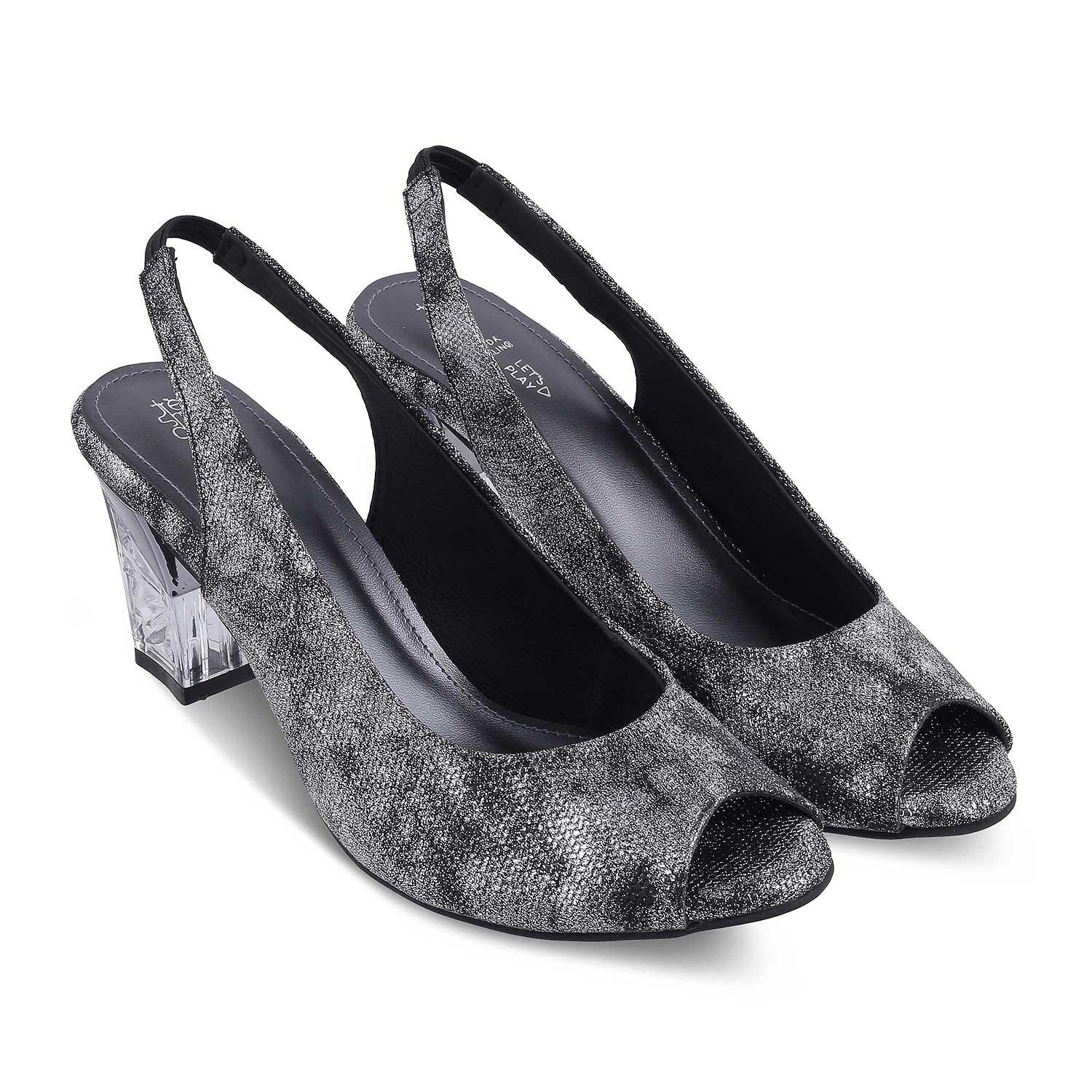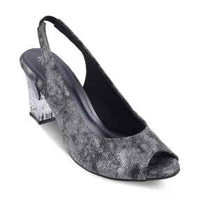 Revamp your fashion game with our Celebrate black women's sandals. Featuring a modern design and a trendy silver & transparent 3-inch block heel, these sandals are ready to add an instant lift to your look. Make heads turn at an upcoming party night by styling this chic pair with your outfit.