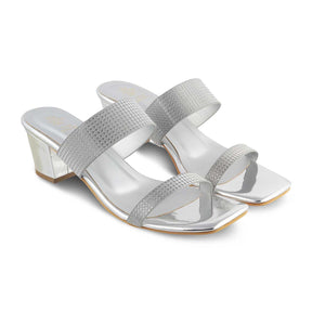 The Cos Silver Women's Dress Block Heel Sandals Tresmode
