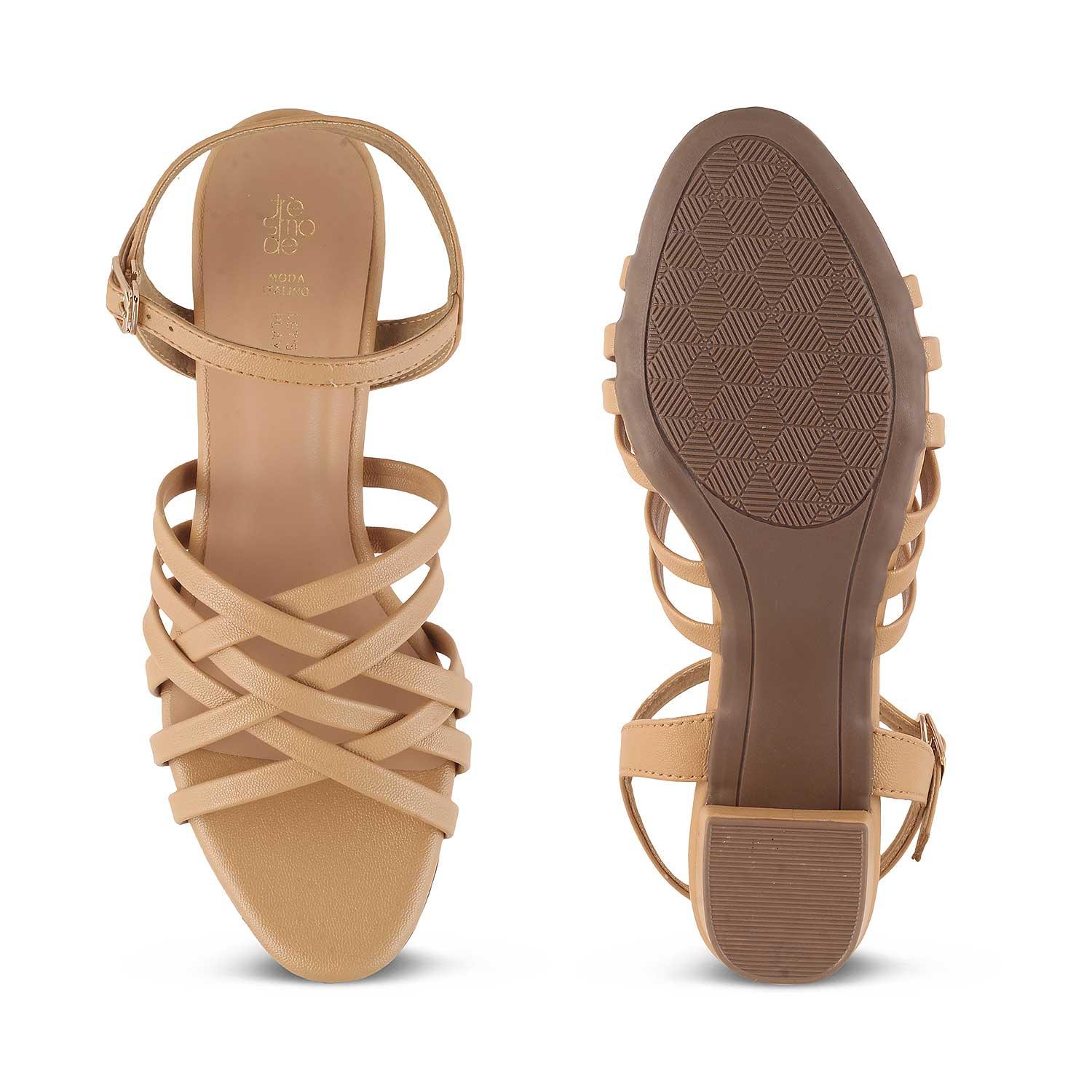 The Crossem Beige Women's Dress Block Heel Sandals Tresmode