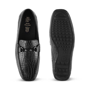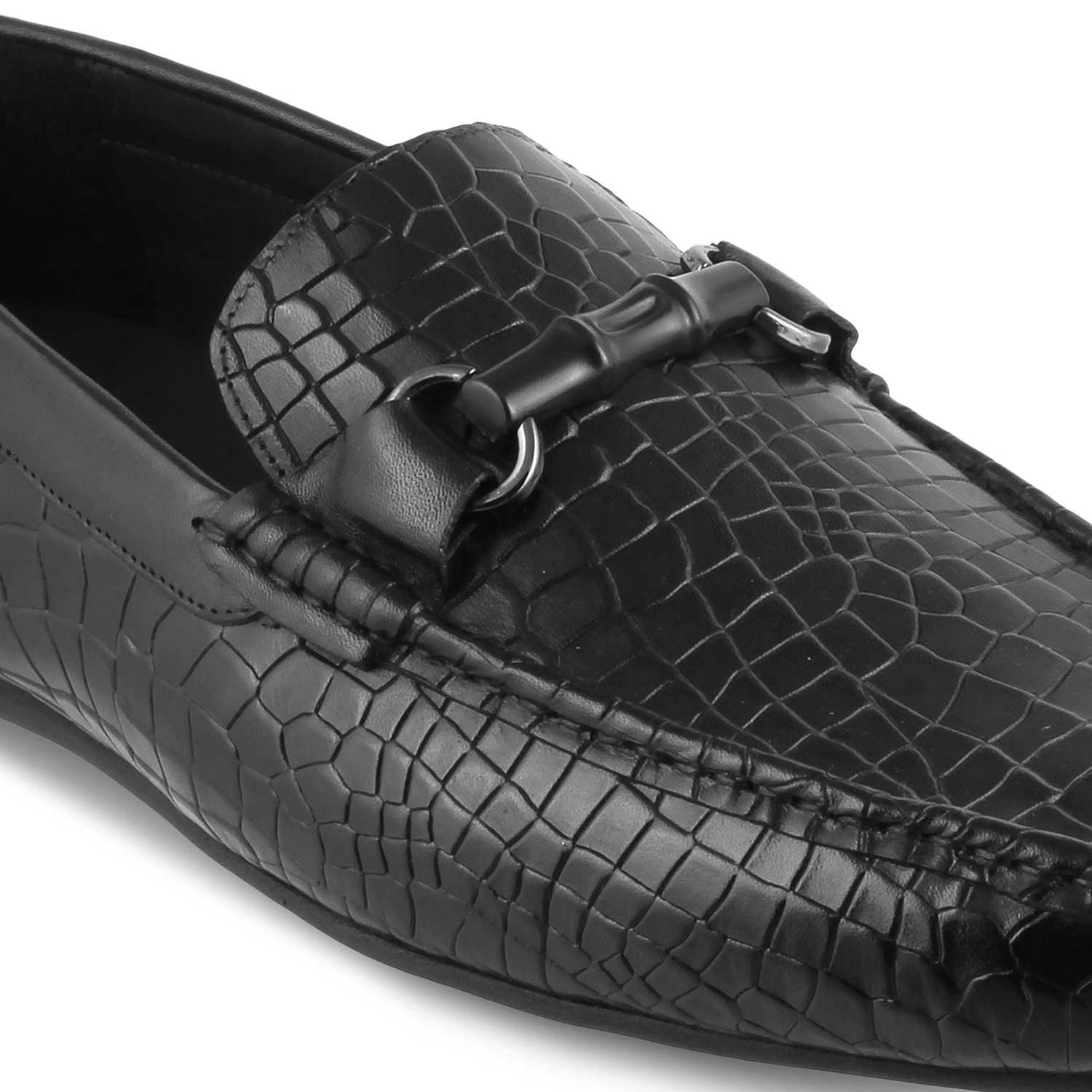 The Croter Black Men's Textured Leather Loafers Tresmode