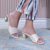 Elevate your party look with our Cuenca beige block heels for women. Famous for striking the right balance between style and practicality, this chic pair will be your go-to for your special events. Add an elegant touch to your style by adding these heels to your closet. Pair them with your outfit for a date night.