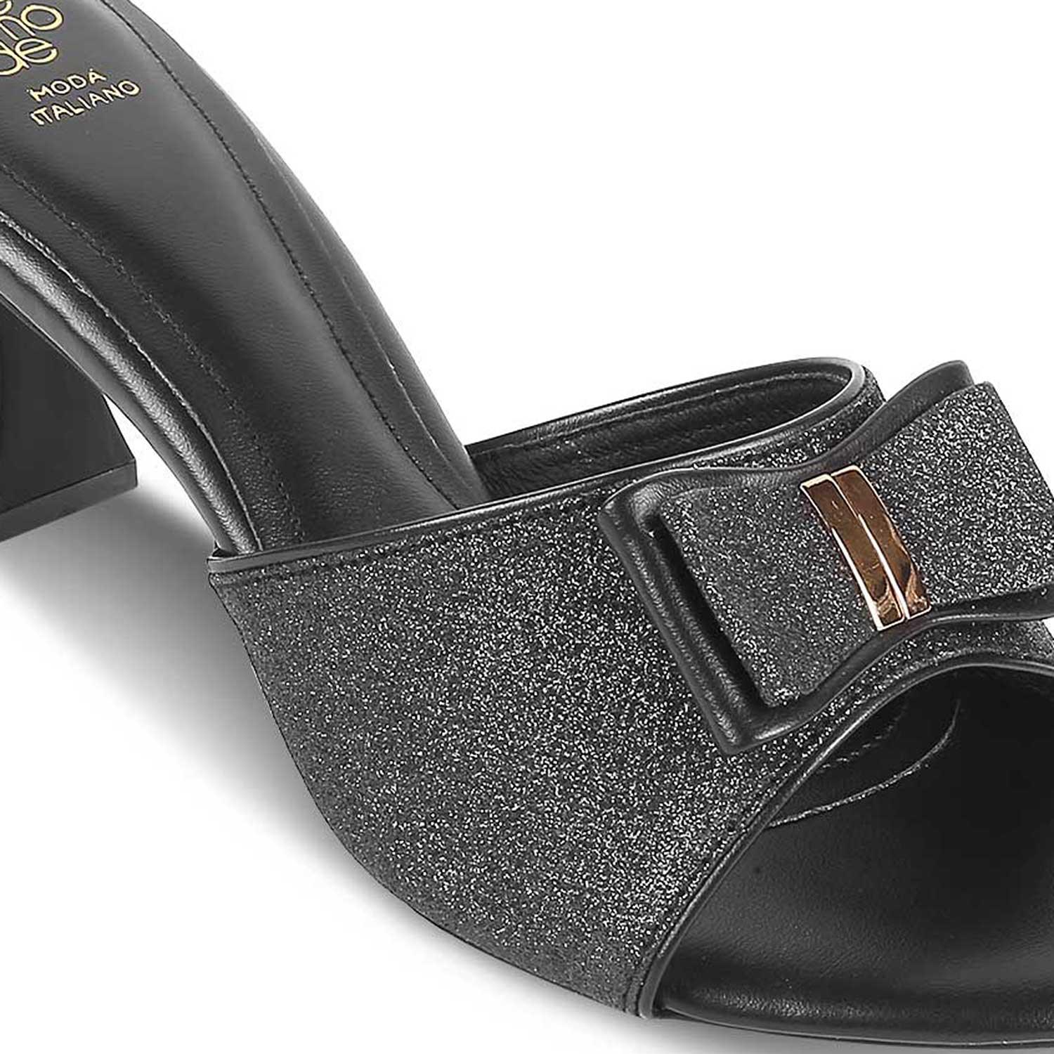 Elevate your party look with our Gamos black women's heel sandals. With a 2.5-inch heel height, these reptile-patterned modern sandals are here to add that fashion quotient to your entire look. Put your party look together by pairing these chic heels with your outfit and make heads turn.