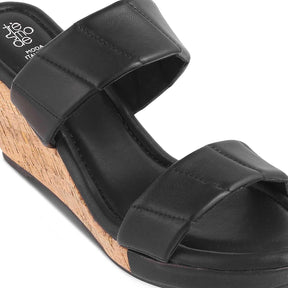 Our Hacks black women's wedges will add an instant lift to your entire look. Featuring a 3-inch wedge height, these wedges will be a go-to for your special occasions. Whether it is a semi-casual or a party look, this pair is ready to be your style partner. Team these versatile wedges with a black jumpsuit and pearl earrings.