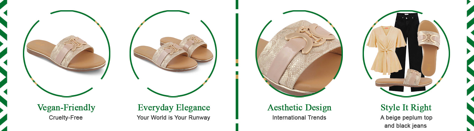 Uplift your casual look by adding the Joy gold to your footwear collection. Featuring a chic strap with a golden buckle, makes these women’s flats versatile and modern. For a stylish look, pair these flats with an off-shoulder top and a blue denim skirt.