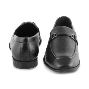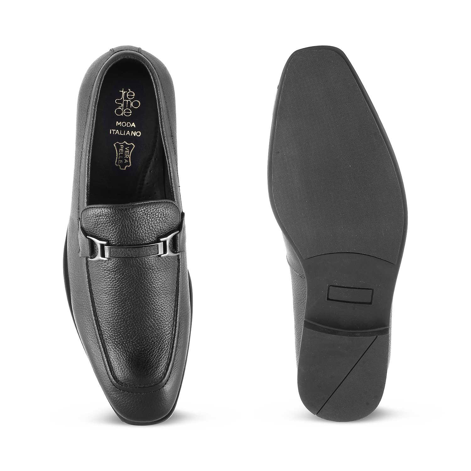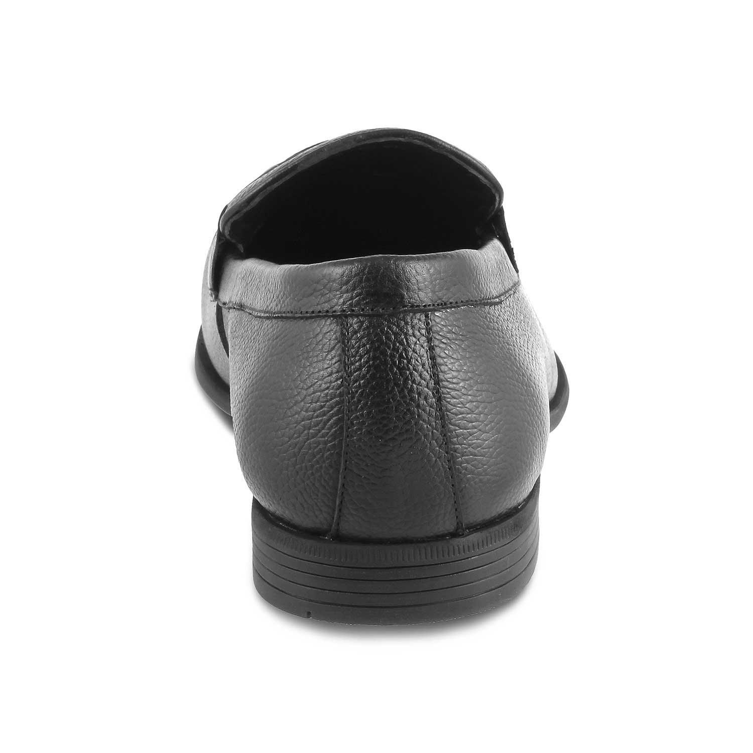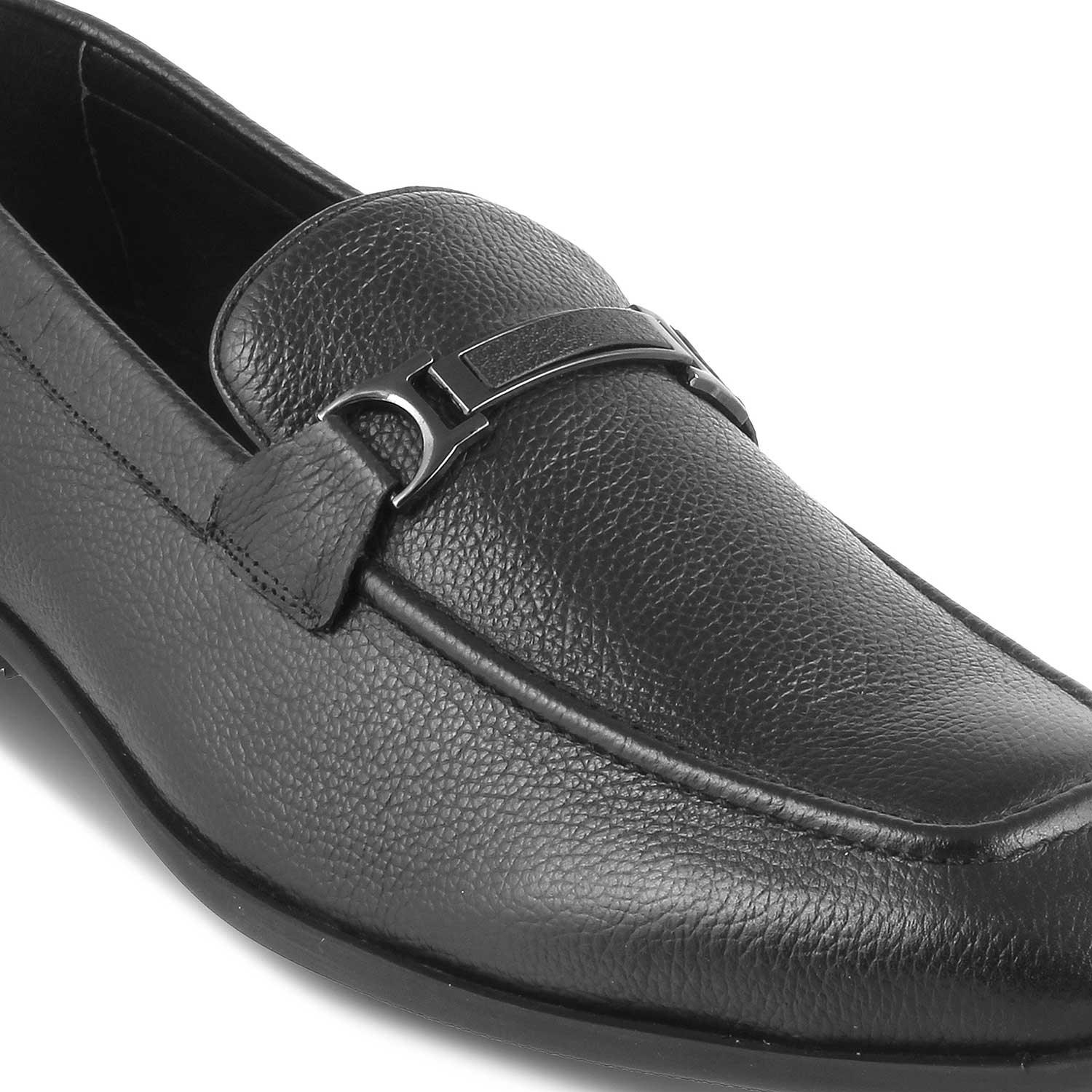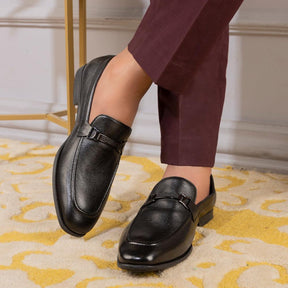 Look sharp in our Leven black men’s leather loafers. Meant to help you stand out from the crowd, these loafers are modern, stylish, and comfortable. Get noticed for your timeless style by teaming these shoes with an off-white shirt, black chinos, and a royal blue blazer.