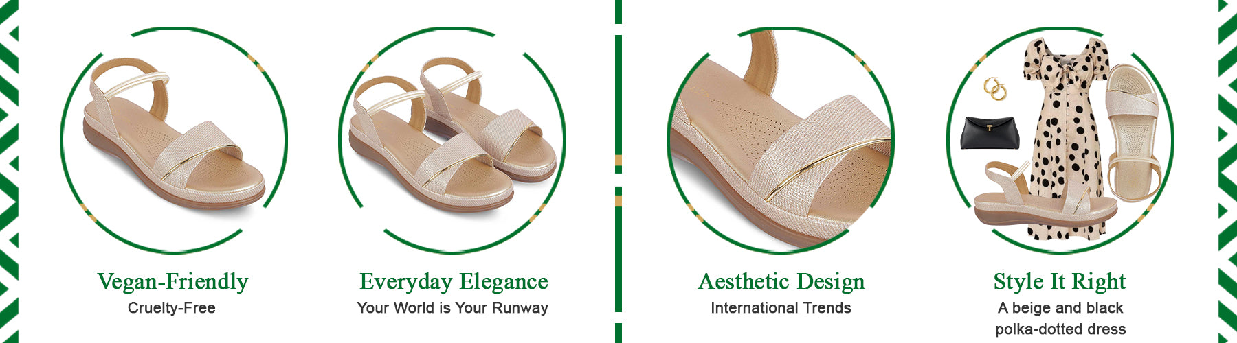 Step out in style with our Linz gold women's wedges. Blending fashion and functionality, these sandals have a modern design and an adjustable strap at the back for a great fit. These vegan-friendly wedges come with a cushioned foot-bed and a comfortable TPR sole. Whether it is an everyday outing or a coffee meet up with your girl gang, these sandals will make you look chic.