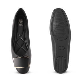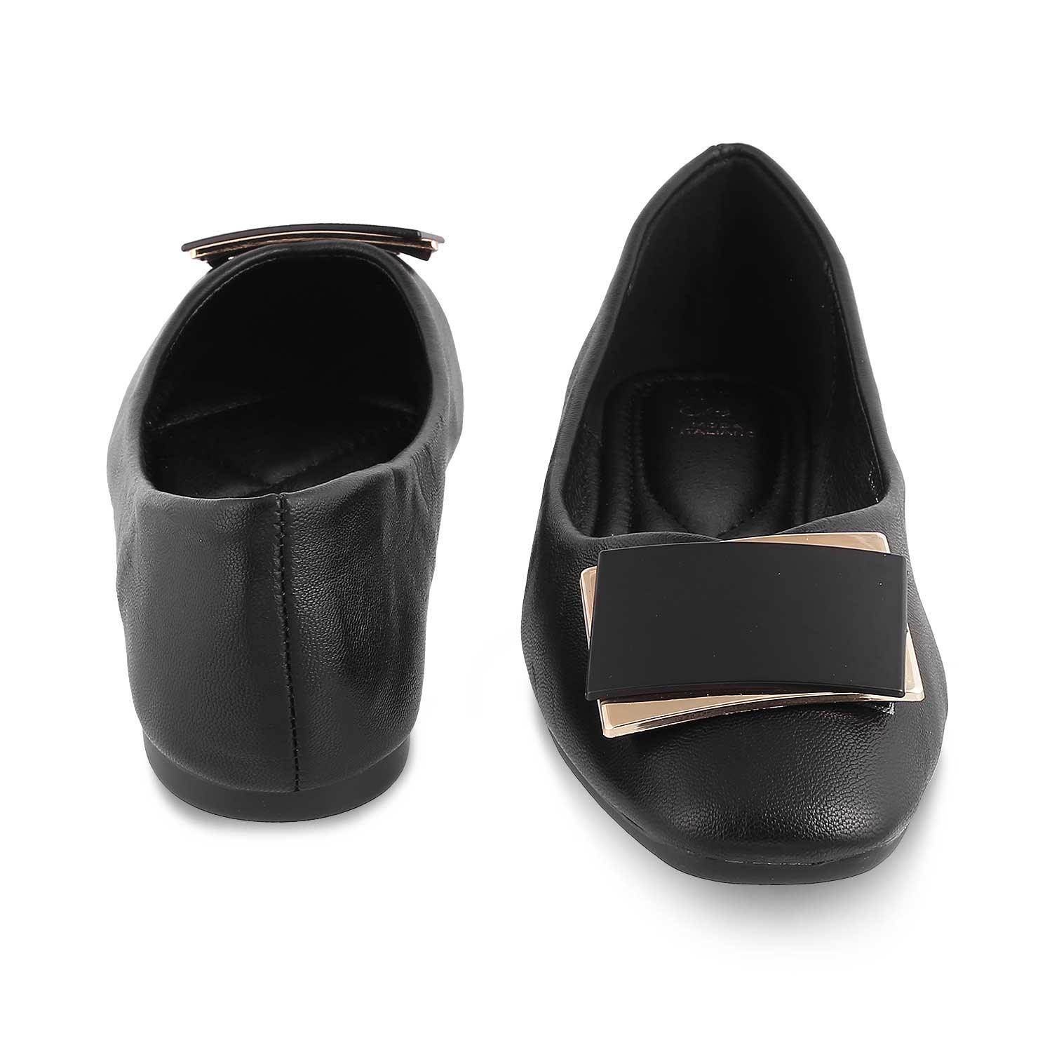 Our Londre Black ballerinas for women will help you make a style statement everywhere you go! Famous for blending fashion and comfort, these ballerinas are a must-have for a comfortable casual look. Add them to your wardrobe to enhance your everyday style. Pair these ballerina flats for women with a beige top and black culotte pants.
