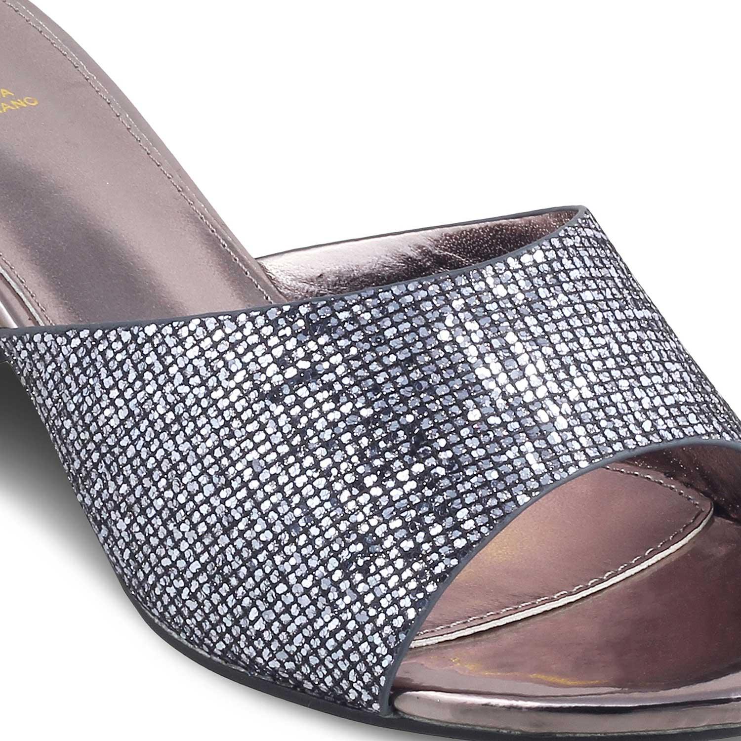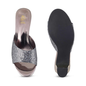 The Martin pewter women’s block heels add life to the party. This festive season, shine brighter than ever before in our stylish shoes. These block heel sandals are quite extraordinary as they feature a rhinestone embellished upper and a stunning block heel. Pair these trendy block heels with a black dress and diamond hoops to make heads turn.