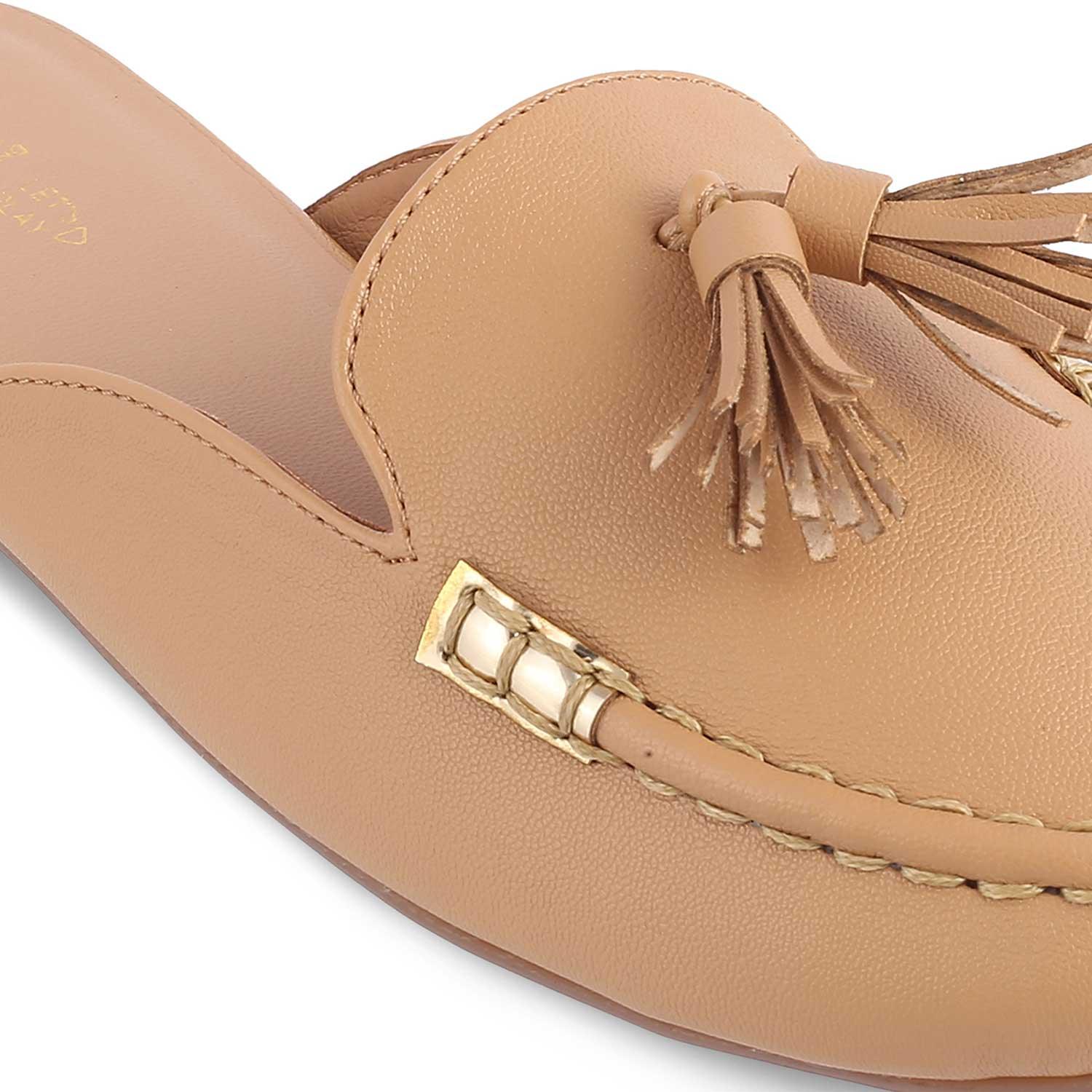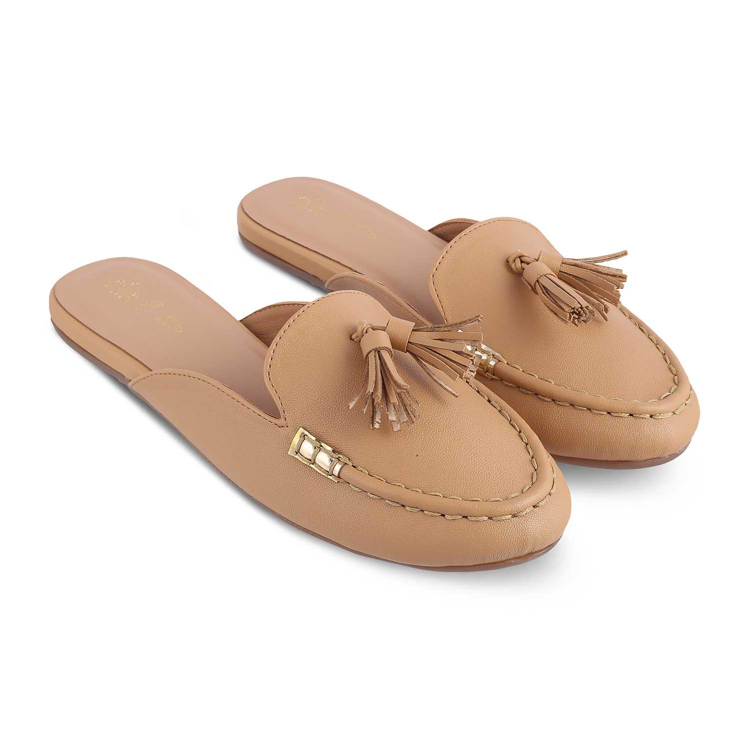 The Massle Beige Women's Dress Tassel Mules Tresmode