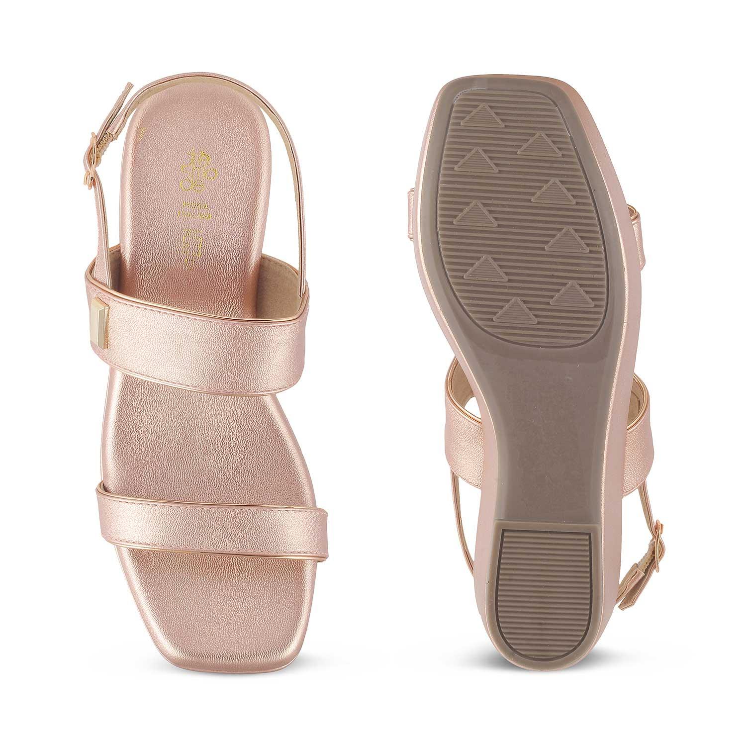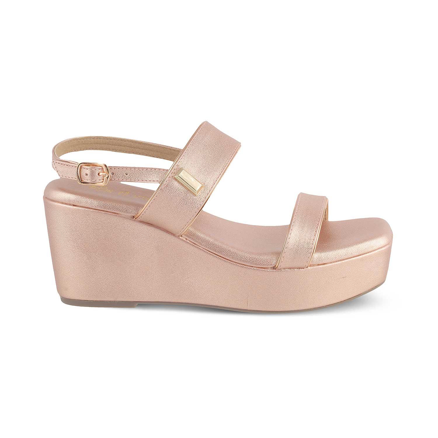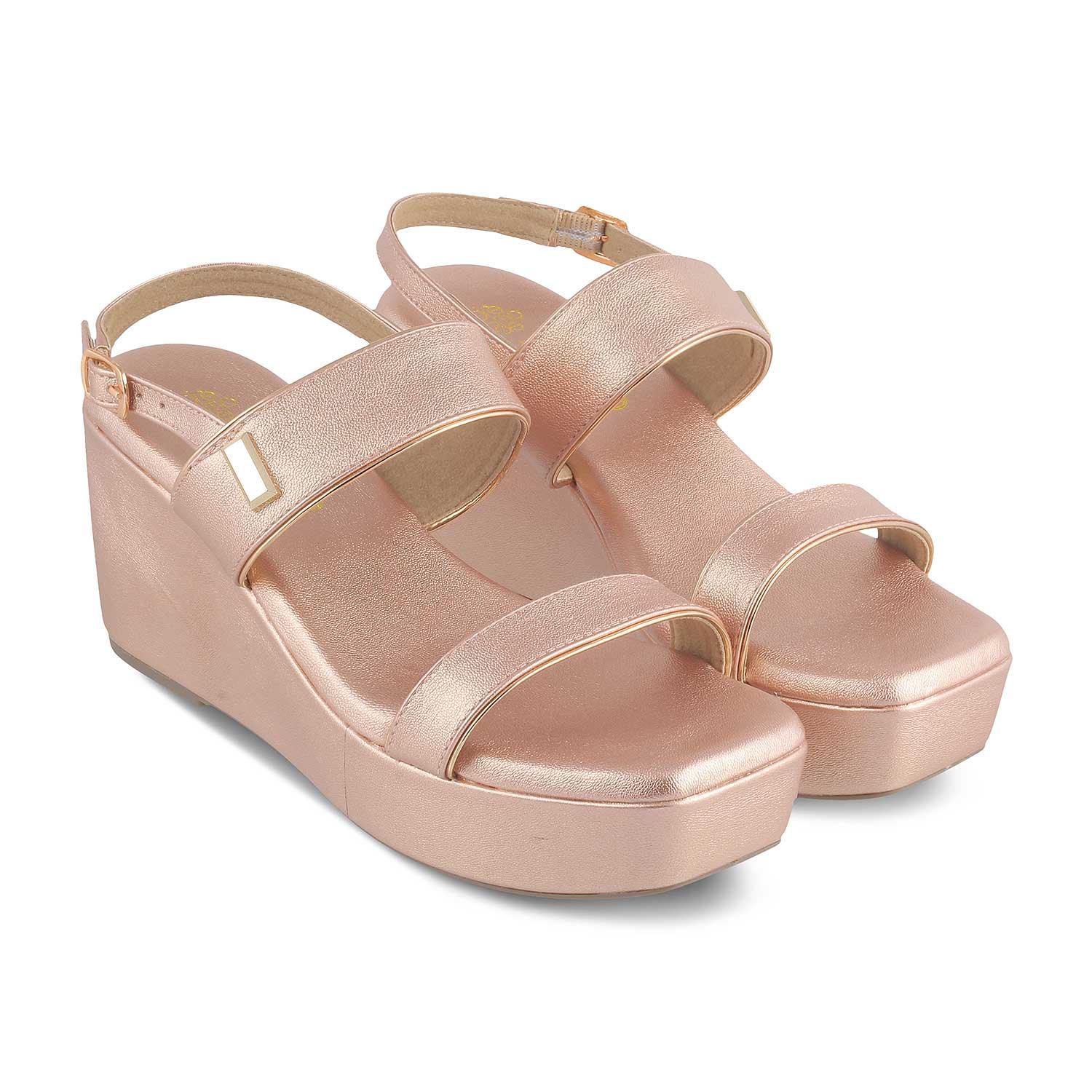 Make a striking style statement in our iconic Meteor champagne women’s wedges. This pair will add a dose of glam to your outfit and make you stand out from the crowd. Pair these wedge sandals with a pink satin midi dress for that perfect party look.