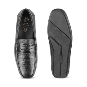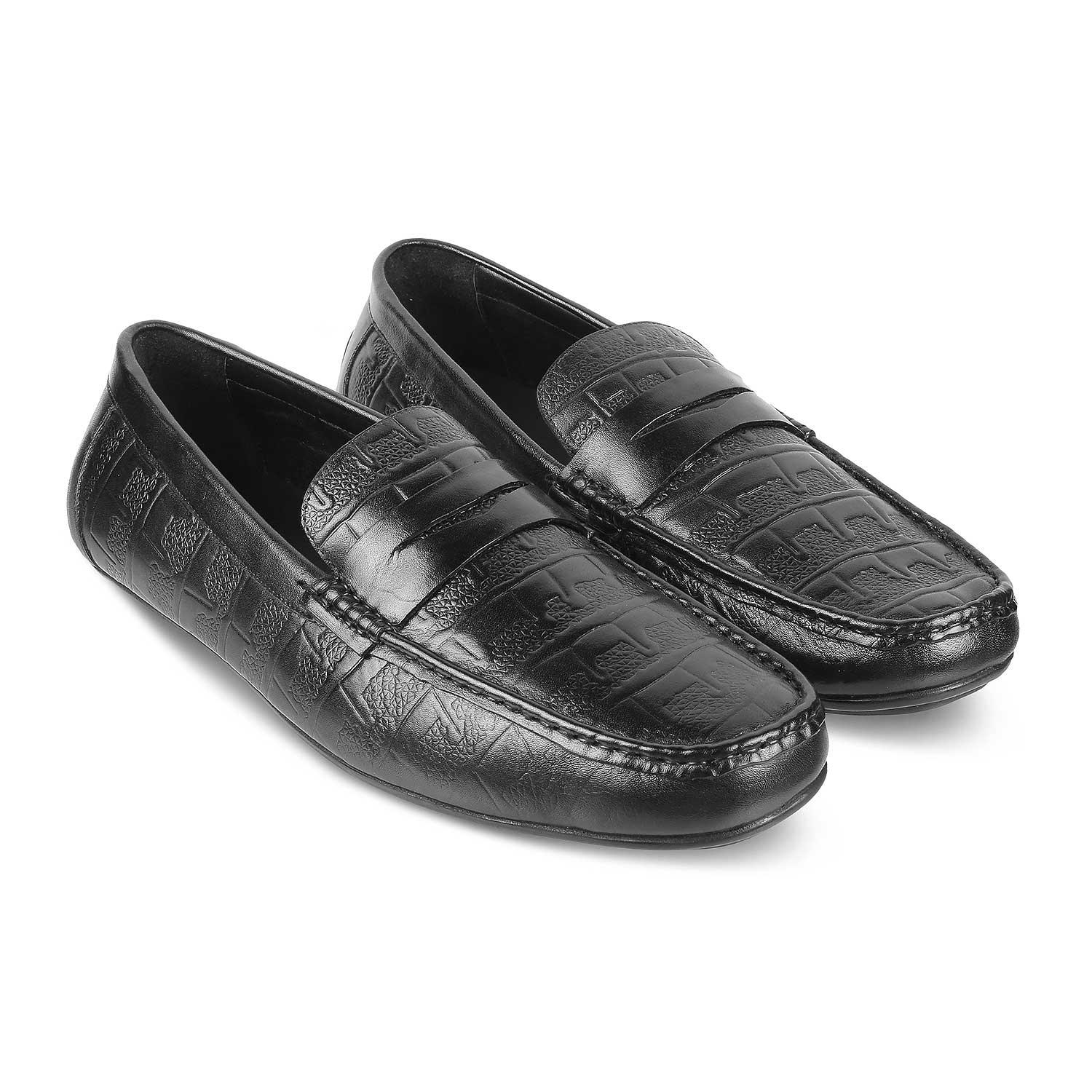 The Miland Black Men's Textured Leather Driving Loafers Tresmode