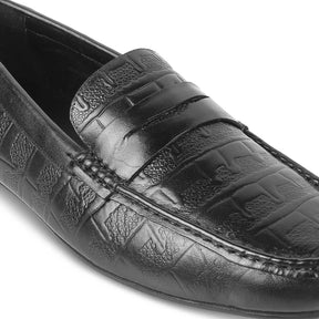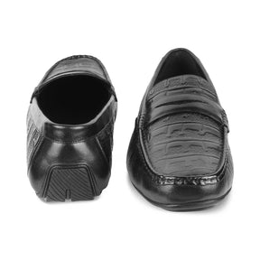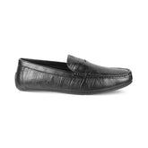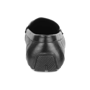 Redefine your look with our Miland black men's textured leather loafers. With a textured pattern and a leather strap on the upper, these shoes are designed for the modern man who wants to smoothly transition from a meeting to an outing. Crafted in premium genuine leather, these driving loafer shoes come with a durable TPR sole to offer a good grip while you drive. For a Friday at work, pair them with a semi-formal outfit.