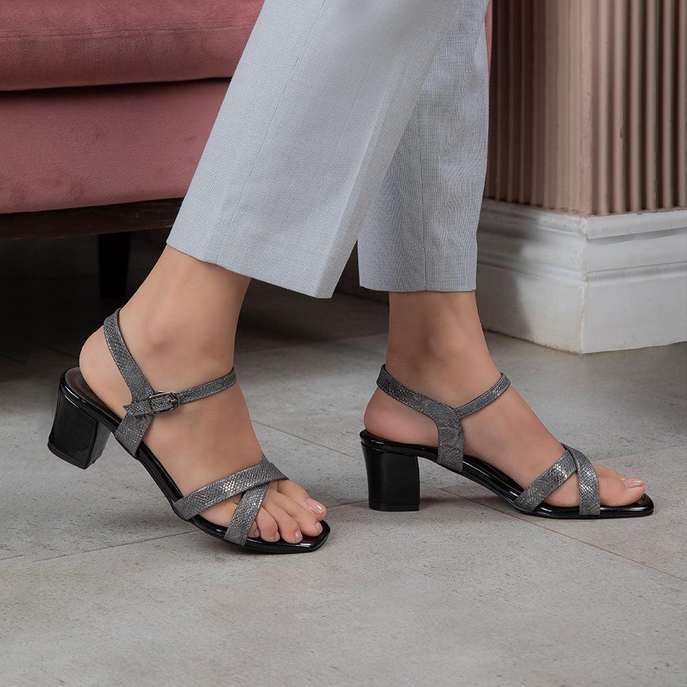 Step up your style game in the Milano pewter women’s block heel sandals. Featuring criss-cross straps, an adjustable strap, and a square toe-shape, this pair is going to be your party essential! For a Saturday night, team these women’s sandals with a black crop-top and beige pants.