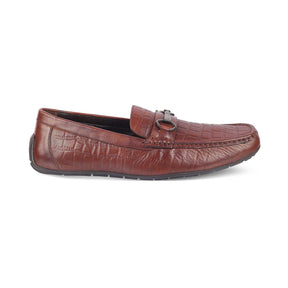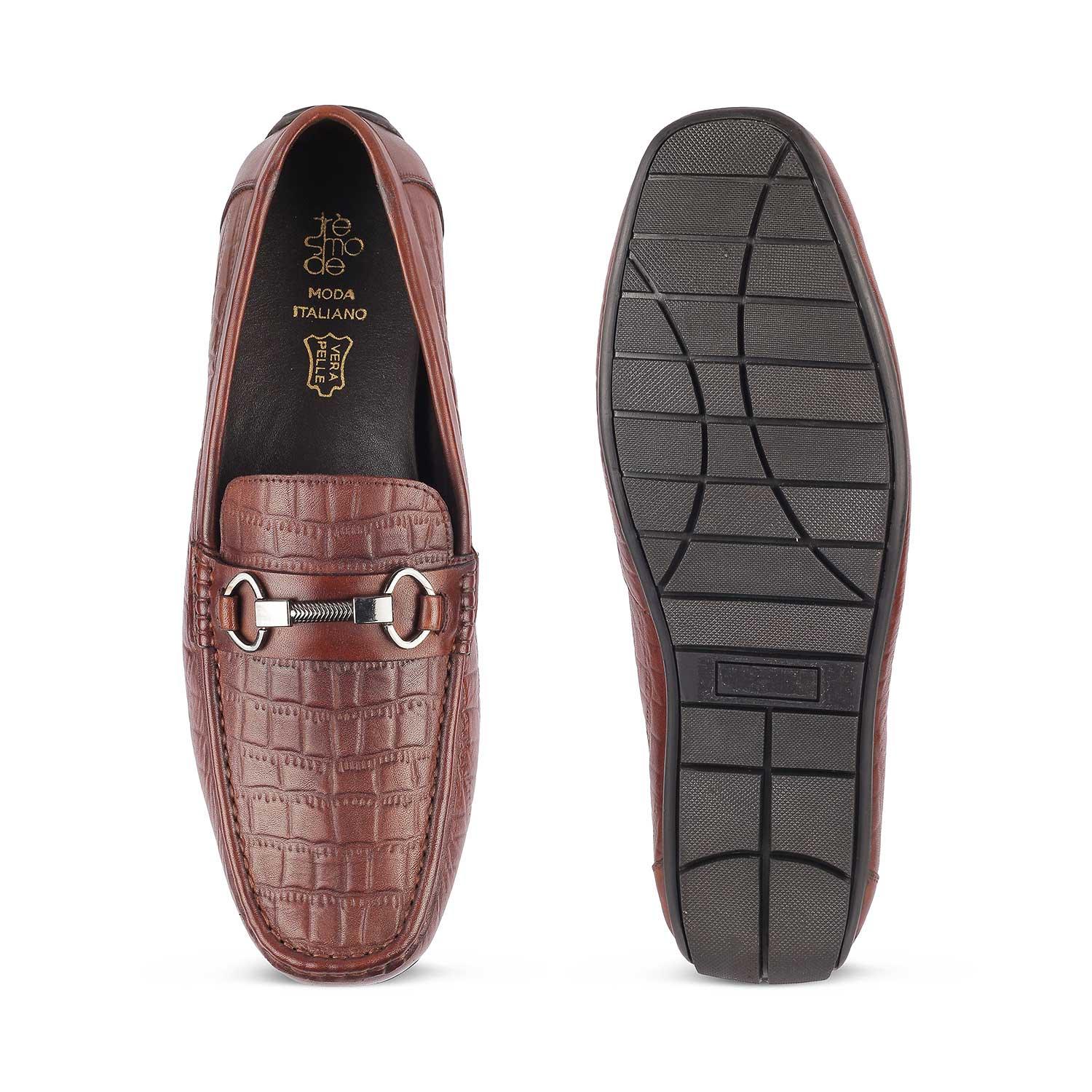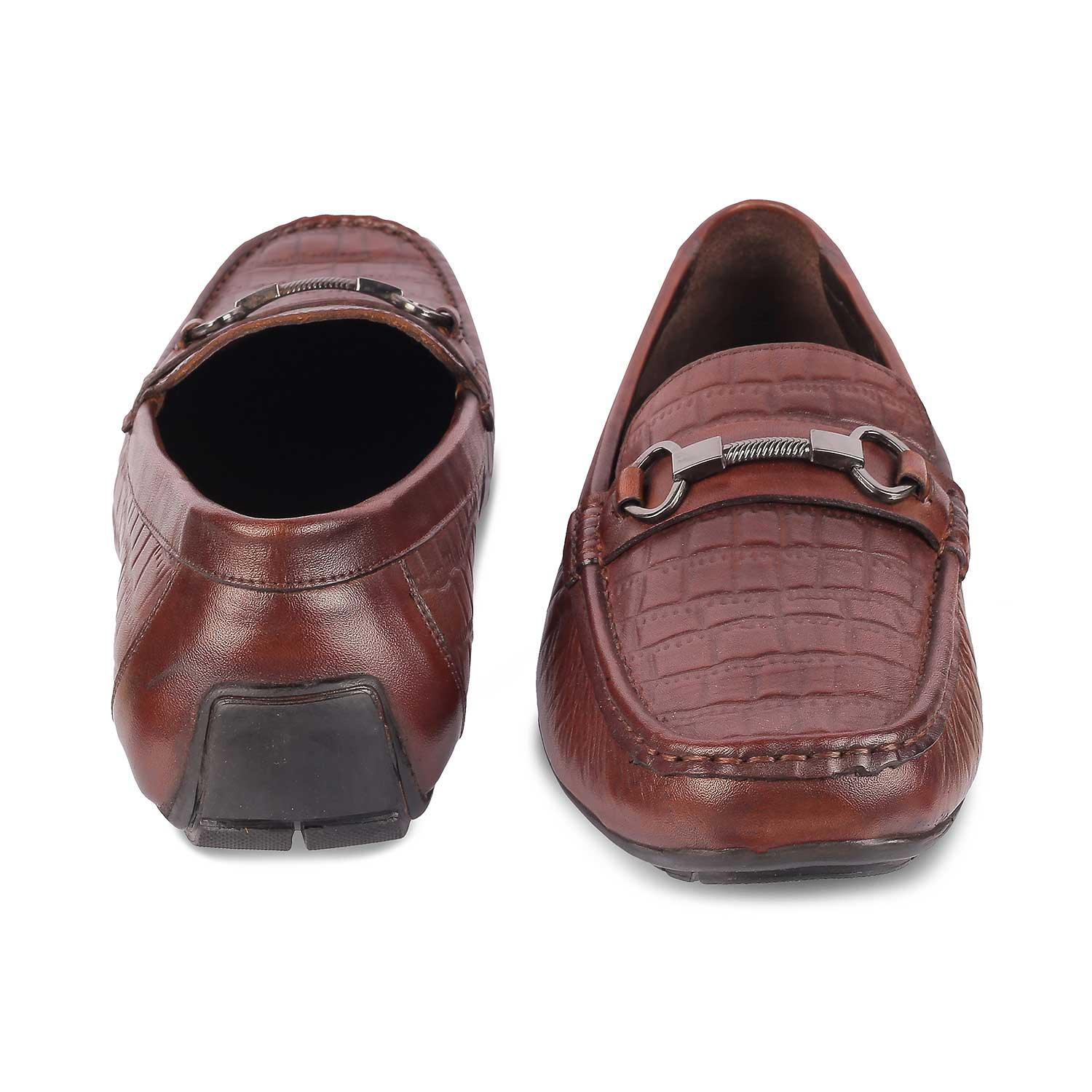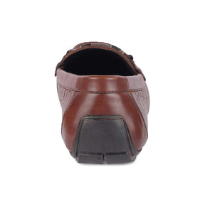 The Miluck Brown Men's Textured Leather Driving Loafers Tresmode