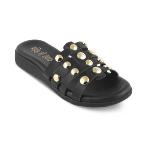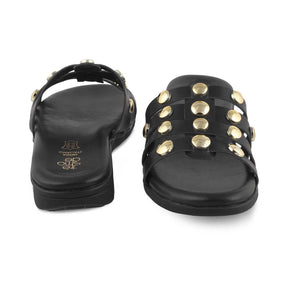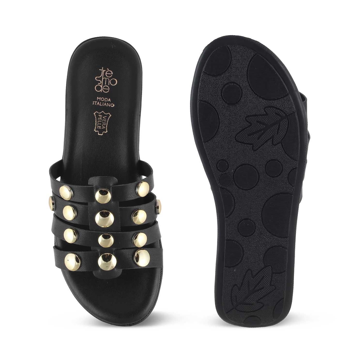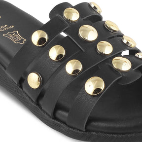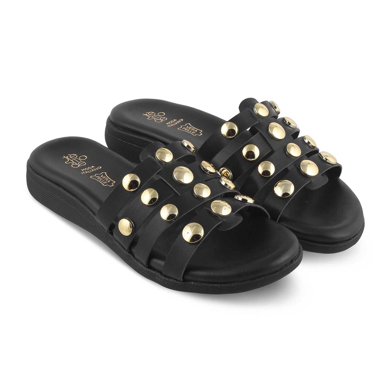 Elevate your style with our Monrow black women’s flats. Featuring gold studs, crafted in vegan-friendly leather, and designed with attention to detail, these flats will elevate your fashion game while keeping your feet pampered all day long. Style them with a little black flare dress and accessories.