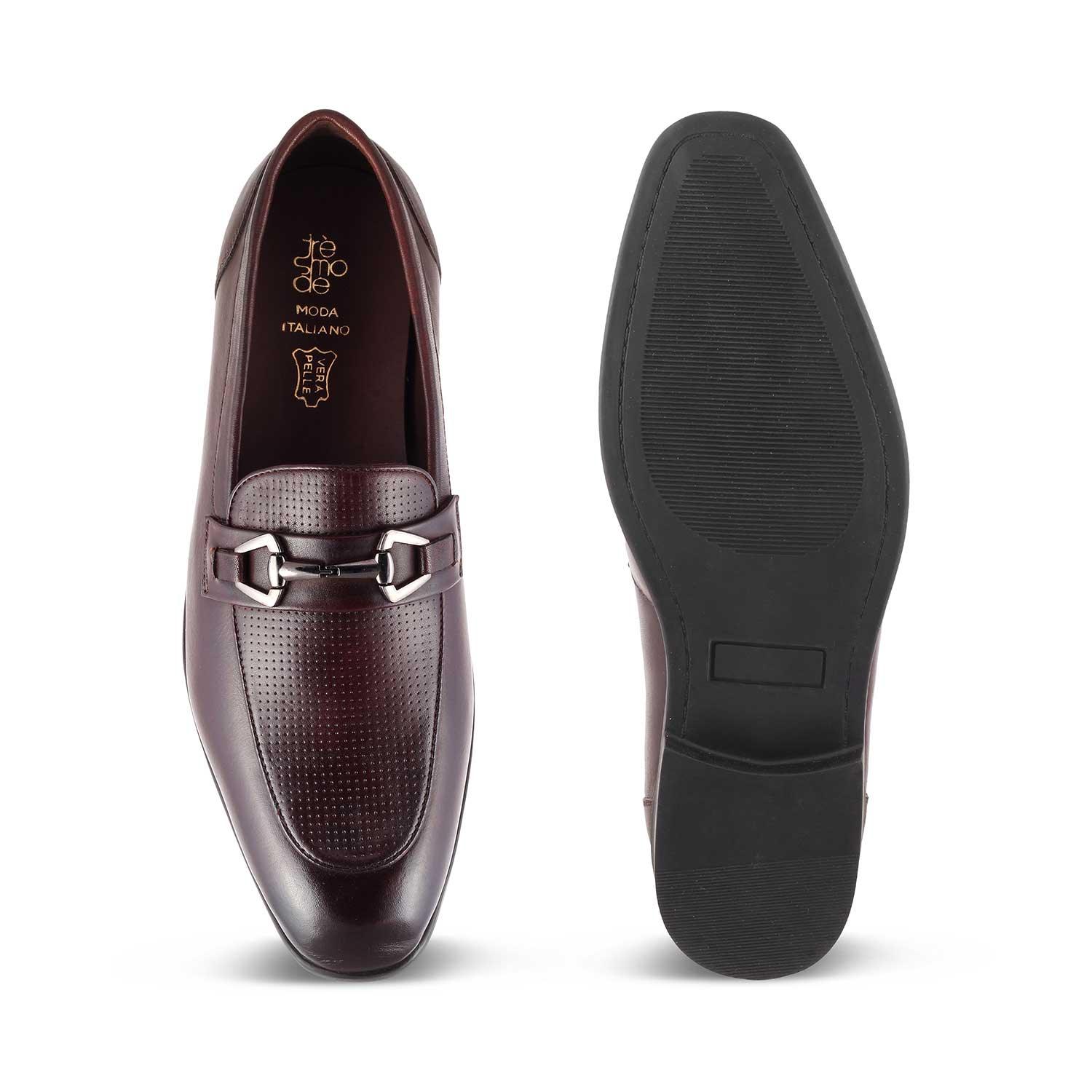 Our Montli brown men’s leather loafers end your search for that perfect, timeless footwear. Crafted in premium Italian leather to give you that luxe feel, these loafer shoes are a must-have for a flawless formal style. Look sharp by pairing them with an olive green shirt, beige chinos, and a classic watch.