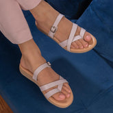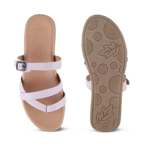 Our Mos lilac women’s flats are ideal for a comfortable casual look. Featuring criss-cross straps and a TPR sole, these vegan-friendly flats will make a great addition to your everyday style. Take every step in style with these flats. Pair them with a purple top, a denim jacket, and denim shorts for a denim-on-denim look.
