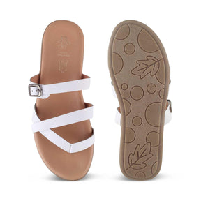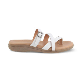 Our Mos white women’s flats are ideal for a comfortable casual look. Featuring criss-cross straps and a TPR sole, these vegan-friendly flats will make a great addition to your everyday style. Take every step in style with these flats. Pair them with an ivory floral top, black leggings, and add some accessories.