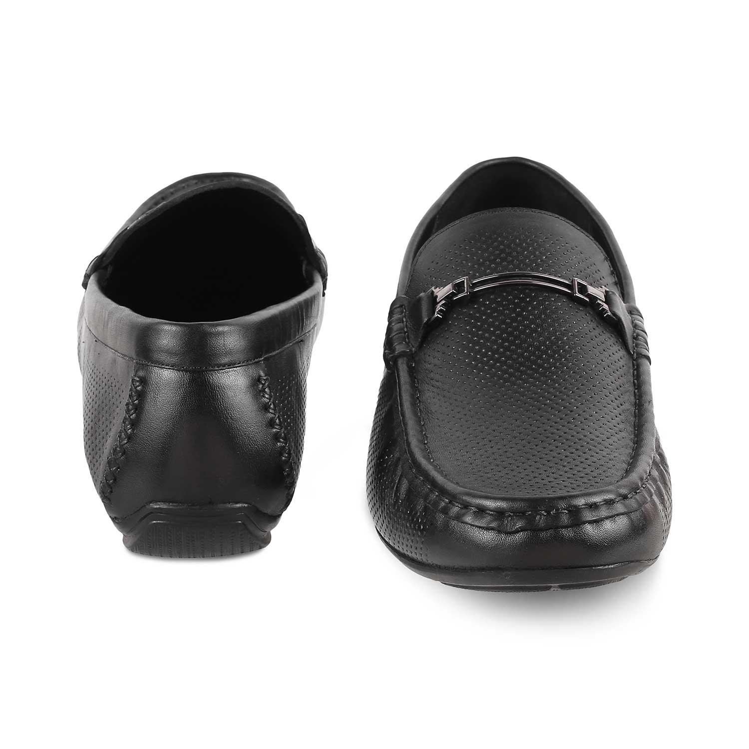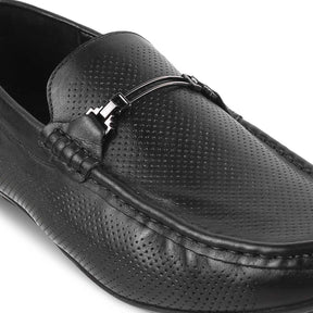 Walk in style by adding our Open-2 black men’s leather loafers to your collection. Meant to offer comfort and crafted in premium imported leather, these loafers are ready to add a dose of style to your look. For a formal style, team them with an off-white shirt, black trousers, and a classic watch.