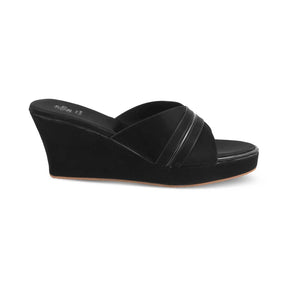 Work hard and party harder in our Party black women’s wedge sandals. Show off your undeniably good sense of style by adding these fashionable, chic, and comfortable wedges to your wardrobe. This pair features a TPR sole and has been created from faux leather. Style these wedges with a beautiful sequin dress to make heads turn.