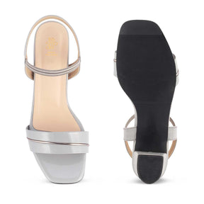 Accentuate your look in the Rachel grey women’s block heel sandals. This versatile pair will be your go-to for party nights. Style these sandals with a floral dress and hoop earrings to look drop-dead gorgeous!