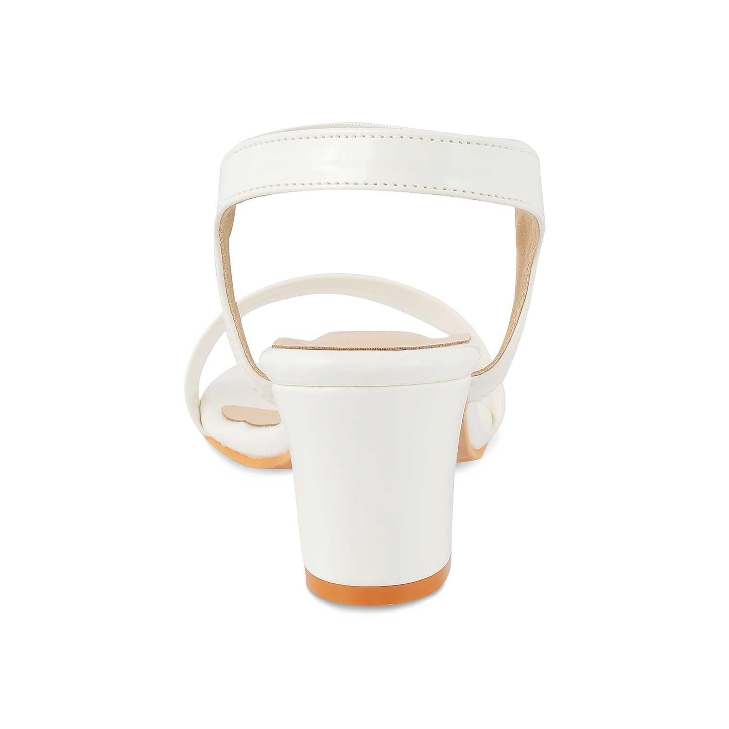 Accentuate your look in the Rachel white women’s block heel sandals. This versatile pair will be your go-to for party nights. Style these sandals with a floral dress and hoop earrings to look drop-dead gorgeous!