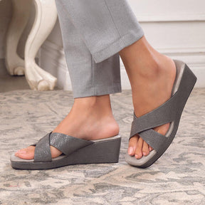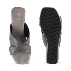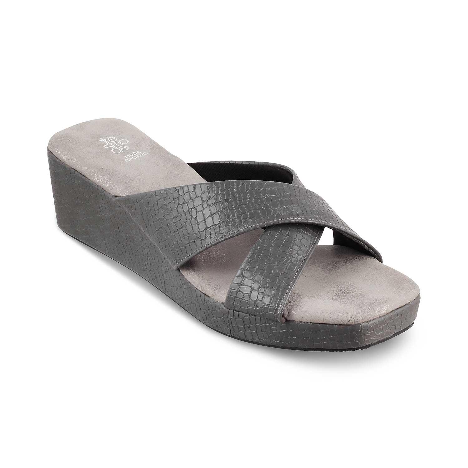 Flaunt your style in our Rew grey women’s wedges. This versatile pair is a must-have, as it effortlessly blends elegance with comfort. Team these wedge sandals with a black off-shoulder skater dress and pearl stud earrings for a flawless look.