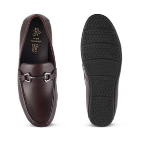 Redefine your everyday look with our Rhodes brown men’s leather driving loafers. Meant to bring fashion and functionality together, these loafers will effortlessly enhance your style game. Team them with an off-white shirt, khaki pants, and a brown watch.