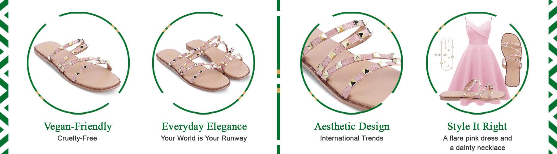 Designed for the modern women who are on-the-go, our Riv pink flats blend style, practicality, and elegance. With fashionable golden studs, this vegan-friendly pair of flats offers extreme comfort without letting you compromise on the fashion factor. Add a dose of style to your everyday looks by getting this pair for yourself. You can either experiment with your outfit to see what suits best or follow our style tip to make a fashion statement.
