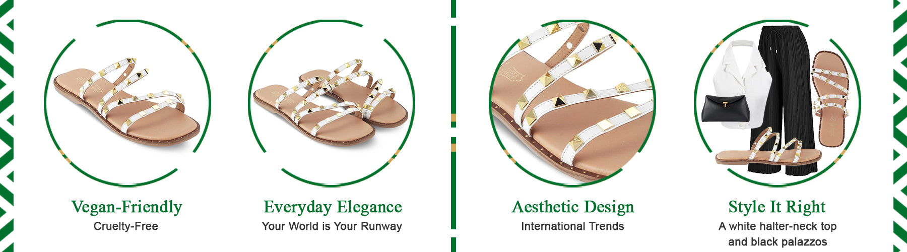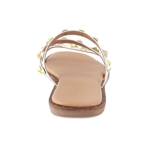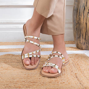 Designed for the modern women who are on-the-go, our Riv white flats blend style, practicality, and elegance. With fashionable golden studs, this vegan-friendly pair of flats offers extreme comfort without letting you compromise on the fashion factor. Add a dose of style to your everyday looks by getting this pair for yourself. You can either experiment with your outfit to see what suits best or follow our style tip to make a fashion statement.