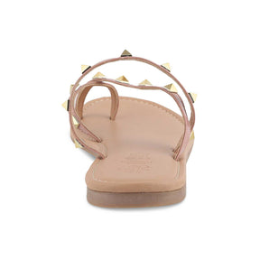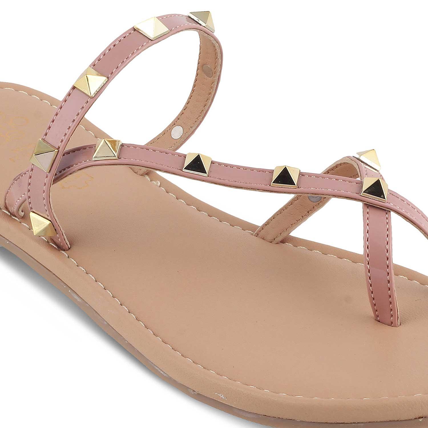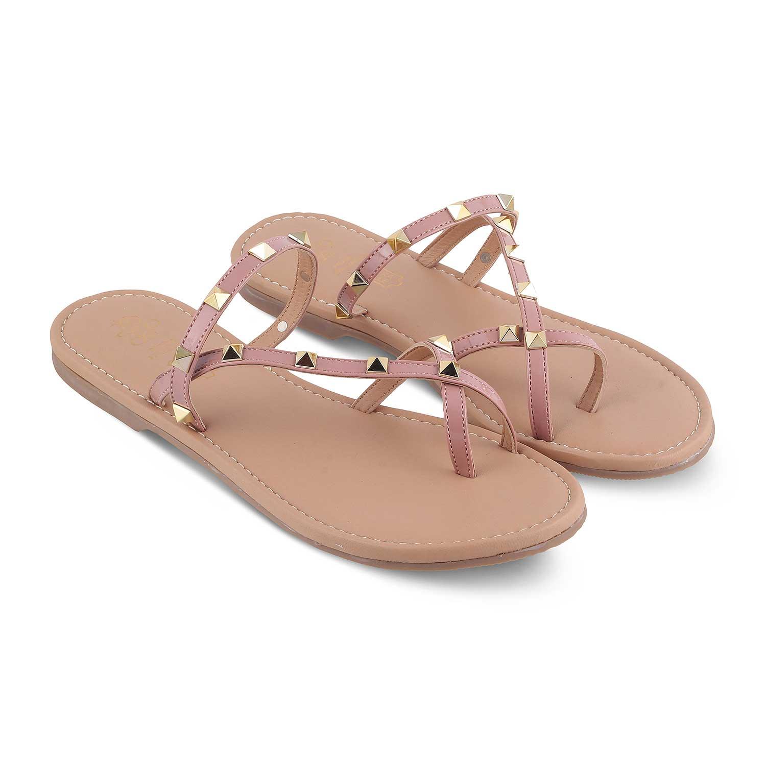 Leave a lasting style impression in our Riya pink women’s flats. Featuring golden studs, these flats for women are a must-have for a chic look. This pair will become a statement piece in your wardrobe, as it is the perfect blend of elegance and practicality. Style them with a dusty pink floral dress and a bracelet stack.