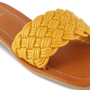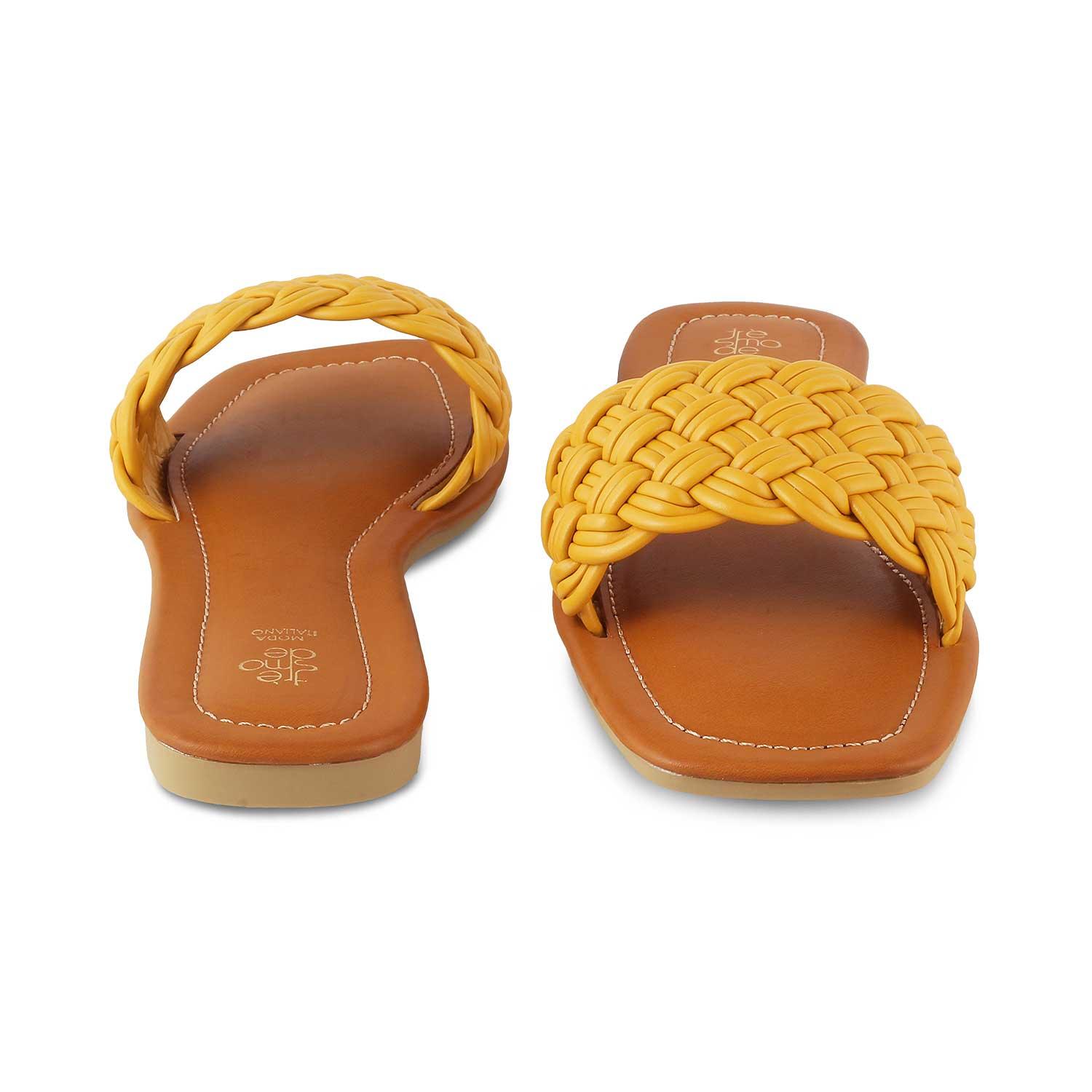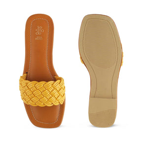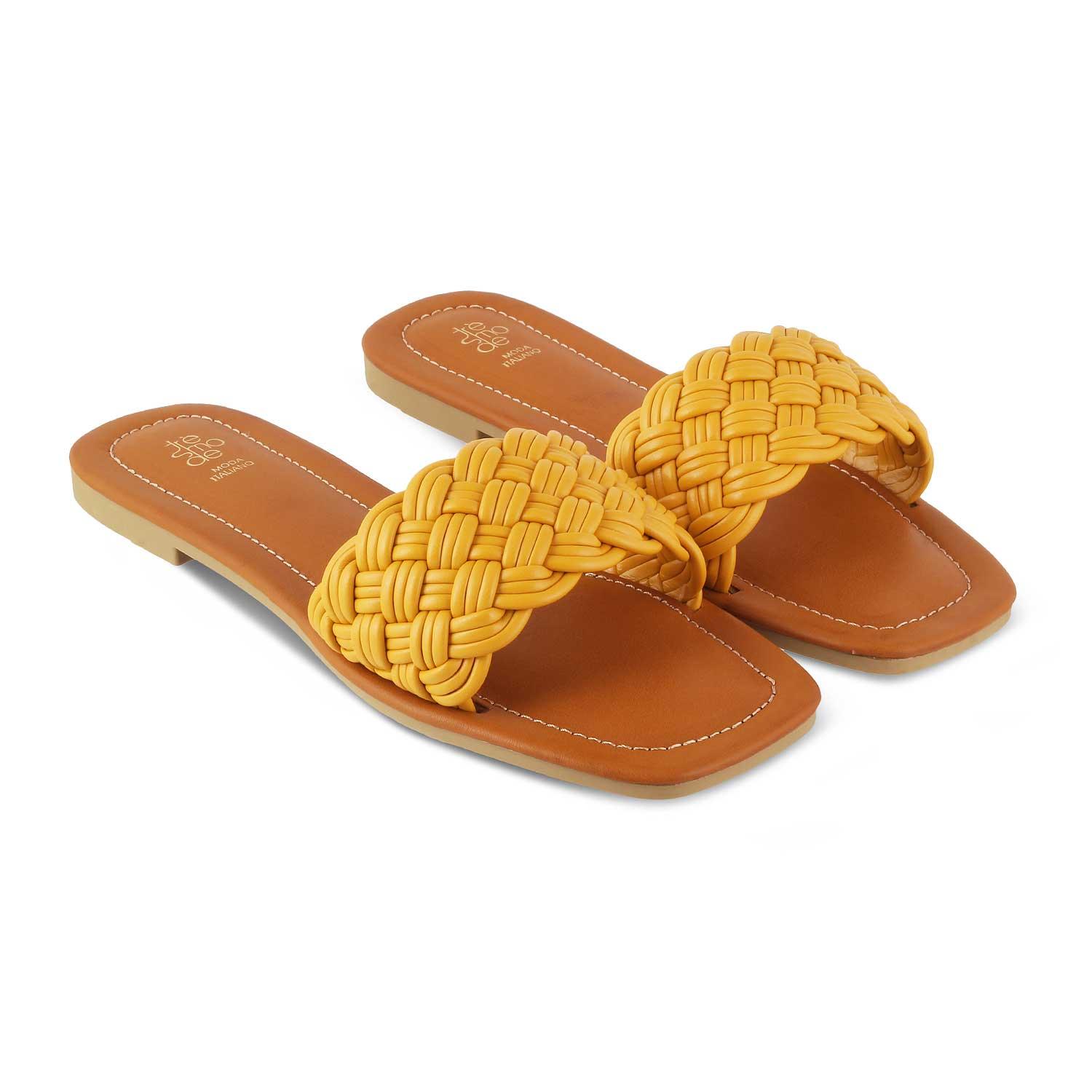 Our Royza yellow women’s flats are here to enhance your everyday style. Featuring a knitted upper and a unique square toe-shape, these flats will surely be a great addition to your footwear collection. Add them to your outfit of the day to make a style statement. For your casual look, pair these flats with a yellow satin blouse and grey leggings.