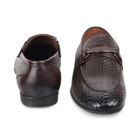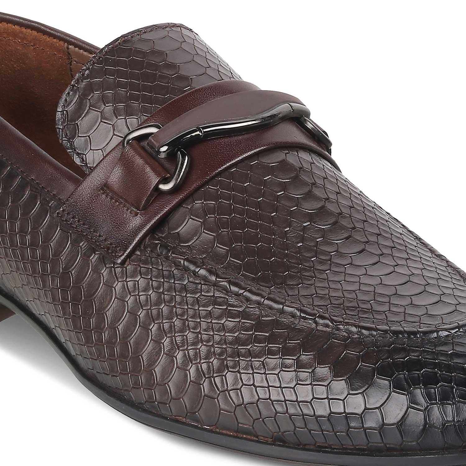 Add a dose of style to your look by adding the Rytom brown men’s loafer shoes to your wardrobe. These loafers have been crafted in premium imported leather. Featuring a croc-embossed pattern and a TPR sole, these loafers will give you that perfect classic look. Pair these men’s loafers with a white tailored shirt and brown trousers for a sophisticated formal look.