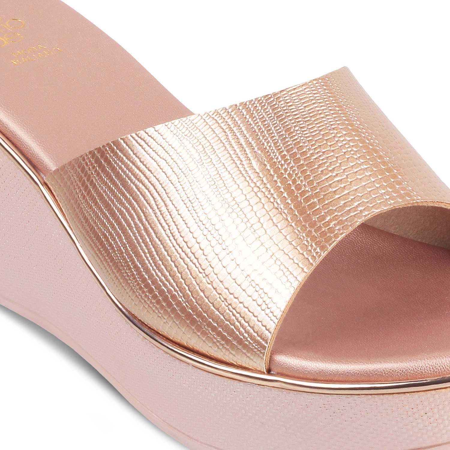 This party season, step out in style in our charming San gold high heel sandals for women. Designed from faux leather and ready to add the perfect amount of glam to your look, this pair won’t go unnoticed. Style Tip – Pair these wedge sandals for women with a sequin dress for a stylish party look.
