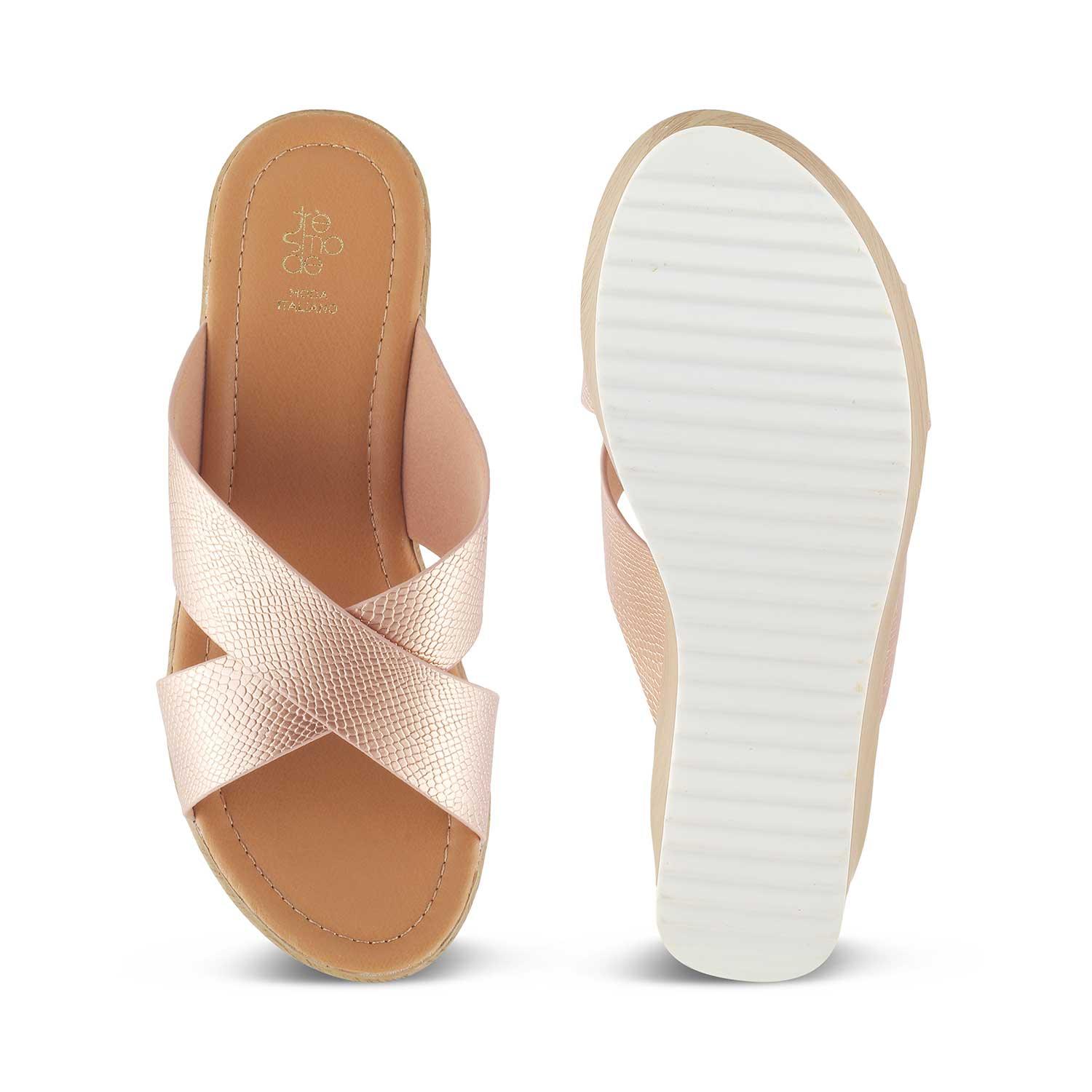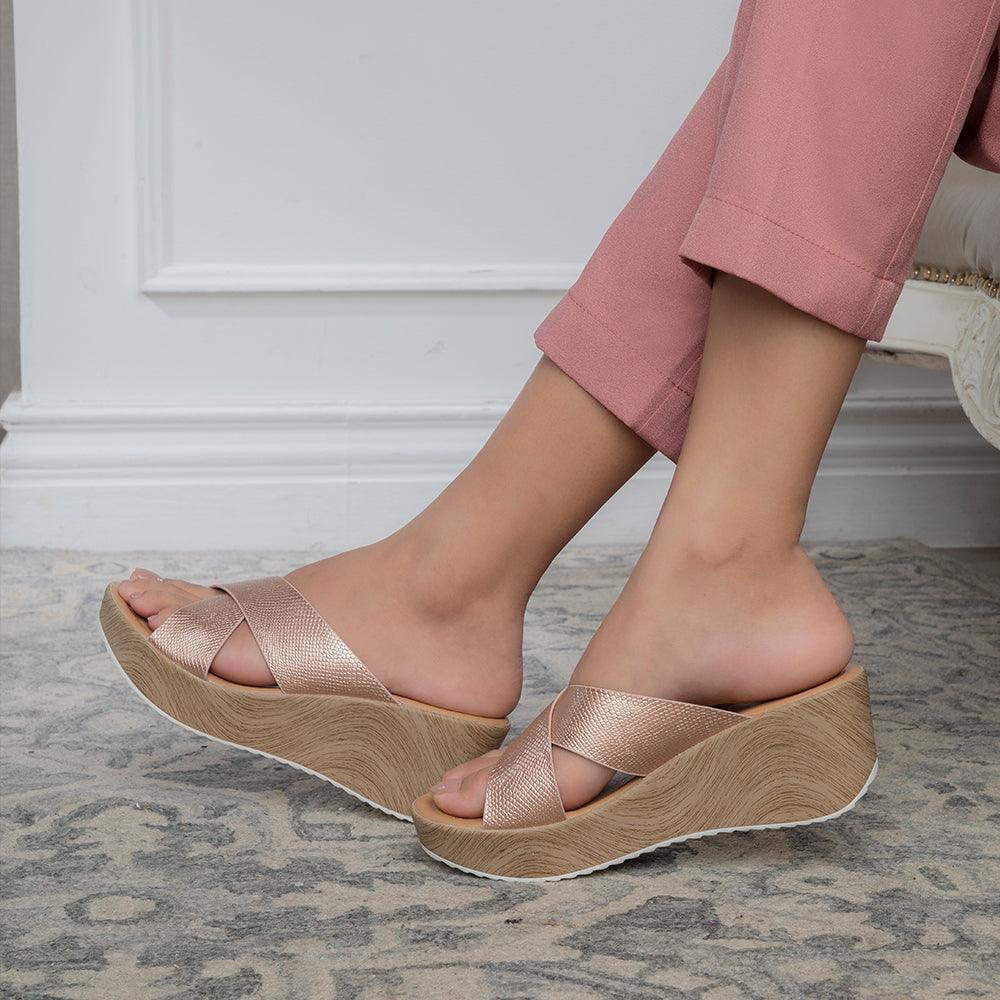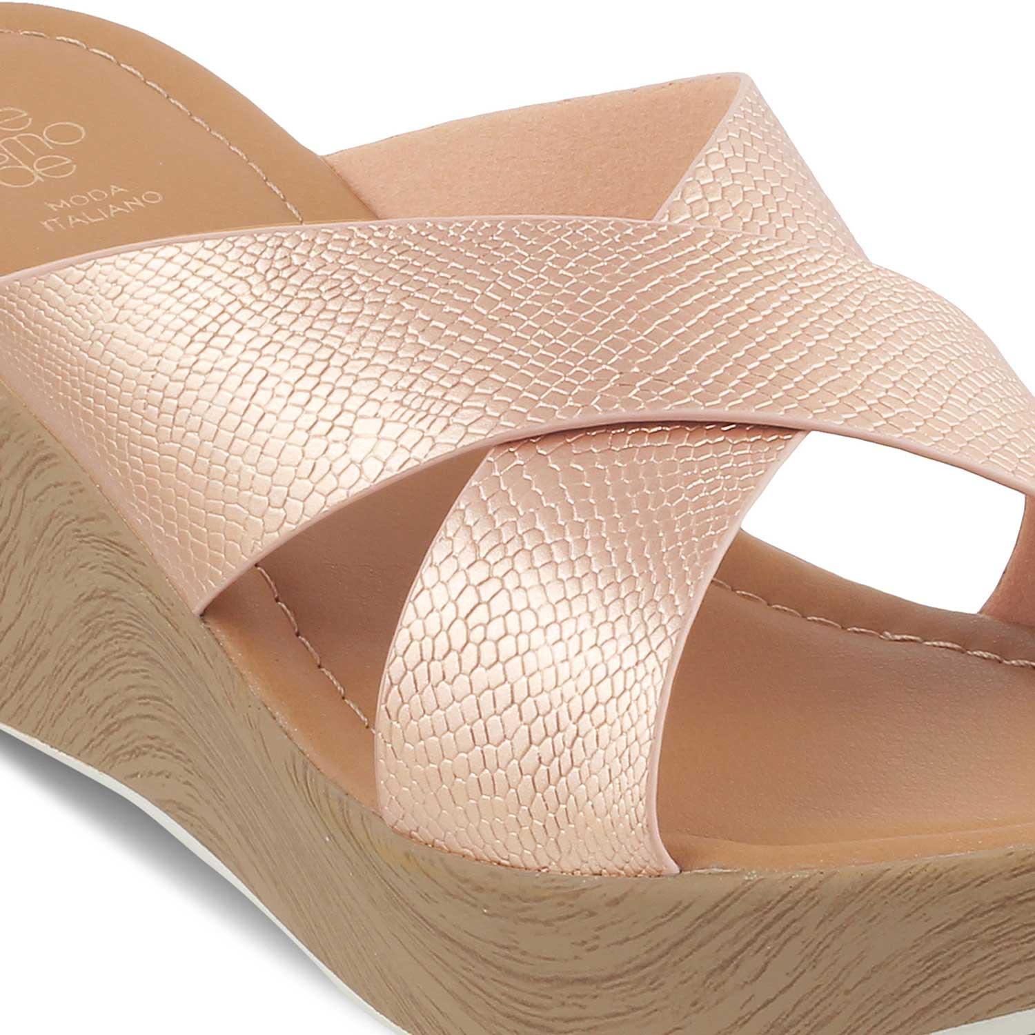 Take your party look to a whole new level in our Santamon champagne women’s wedges. If you want to add that glam factor to your style, these wedges will do the needful! For a Saturday night, team these sandals with a shimmer sequin dress and add some accessories.