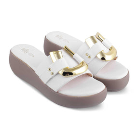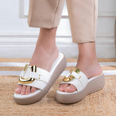 Our Shorse White women's wedges will help you get your look on point. Featuring a comfortable 3–inch cushioned foot-bed and an aesthetic metal embellishment, these wedges for women are ideal for your upcoming party. Be it a semi-formal look or a casual brunch, these wedges will surely be your style partner.