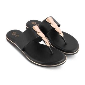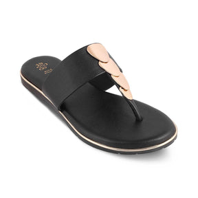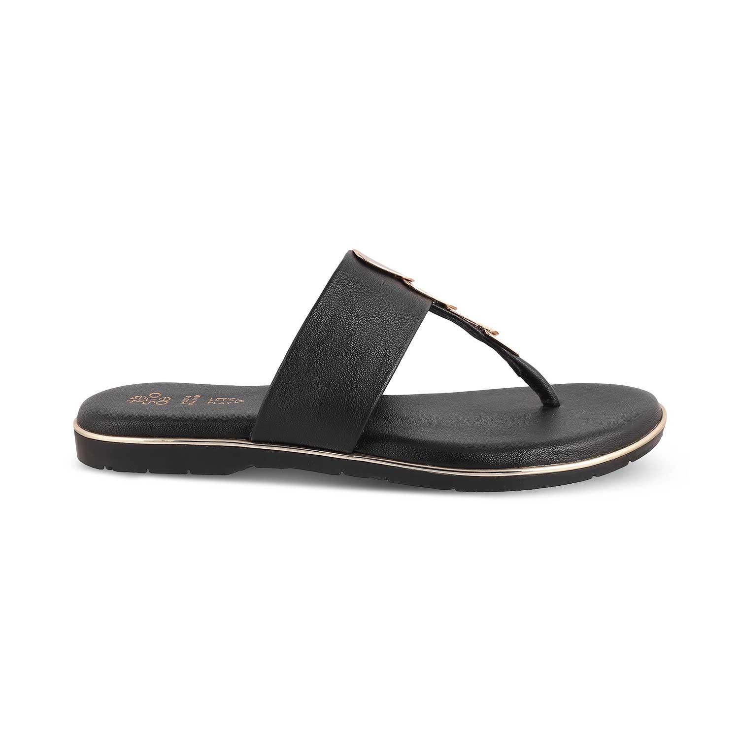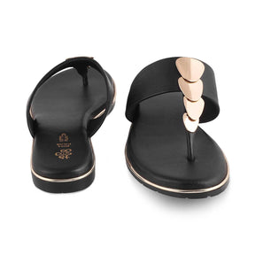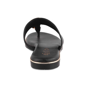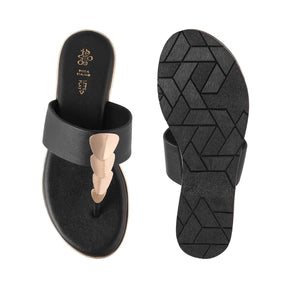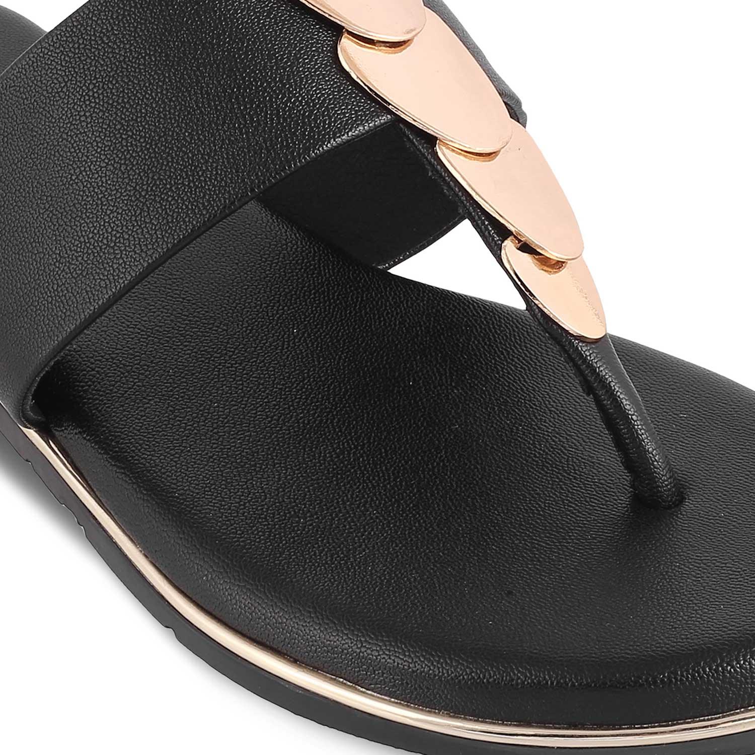Look super chic with our Skglit black flats for women. Designed for modern women who are on-the-go. Transition from a Friday at work to a dinner night with your girl gang, this versatile pair will enhance your look effortlessly. Make a style statement by adding these flat sandals to your collection. Team them with a black turtle-neck top and white denims for a fashion-forward look.