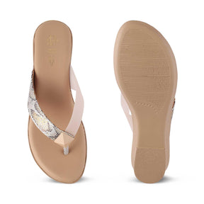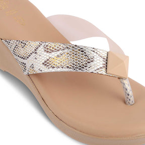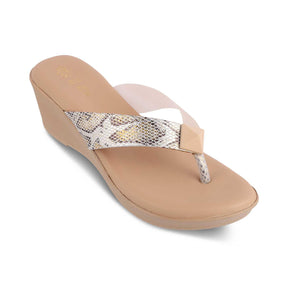 Make a striking fashion statement with our Sledge beige wedges for women. Featuring a snake-textured pattern and transparent upper, these wedges will upgrade your look and take it to a whole new level. Make this chic addition to your footwear collection. For a versatile look, pair these wedges with a beige floral top, black palazzos, and some accessories.