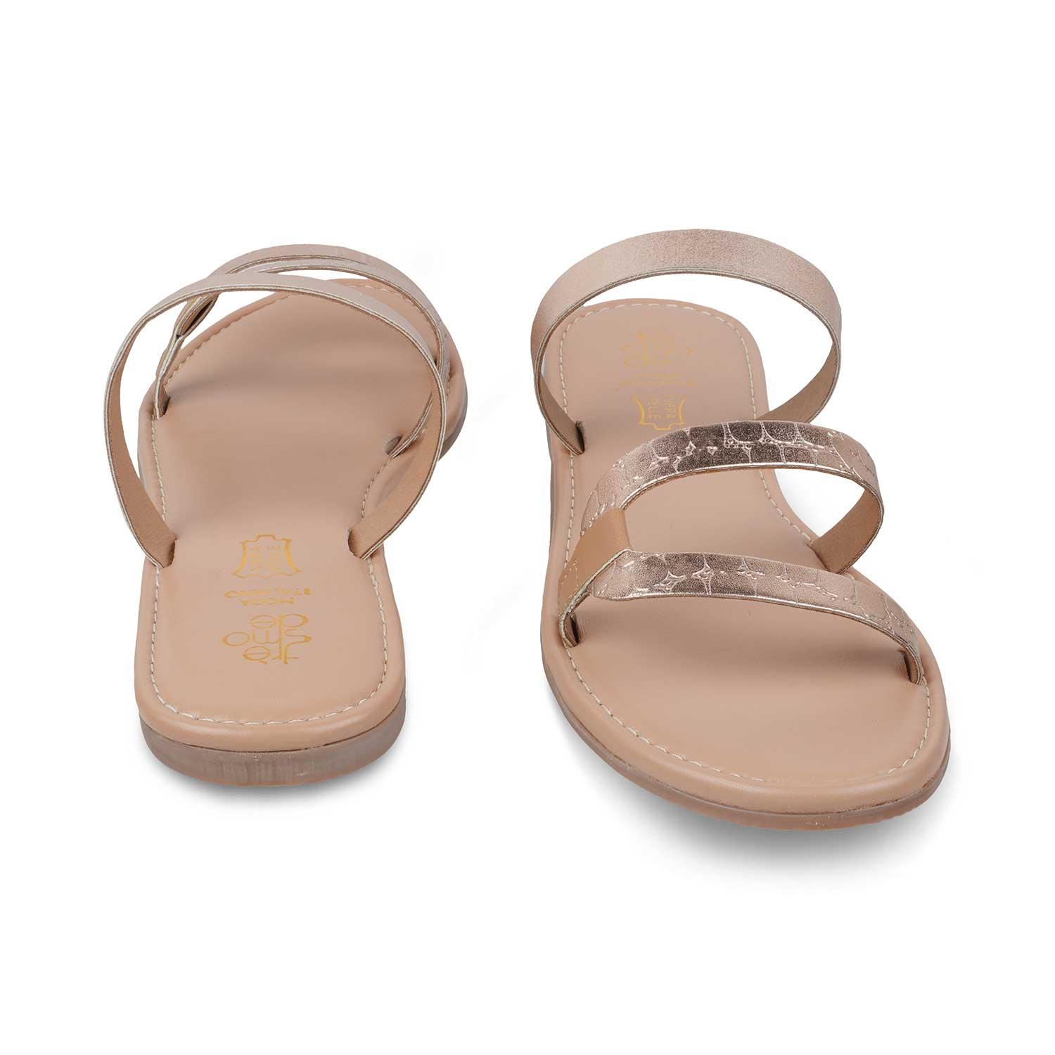 Redefine your everyday look with our Sna champagne women’s flats. This vegan-friendly pair strikes the perfect balance between style and comfort. Look fashionable by adding these flats to your casual collection. Keep it simple by pairing them with a beige top and black checkered pants for a Friday at work.