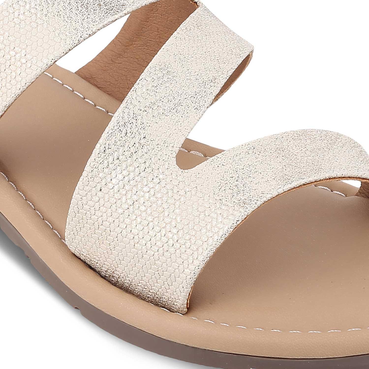 Ace your everyday style with our Snac TMM-1 gold flats for women. Featuring a textured upper and a comfortable cushioned foot-bed, these flats are a must-have for a stylish casual look. Upgrade your daily wear collection by adding these flats to your wardrobe. Style them with a pastel yellow square-neck dress and some accessories.