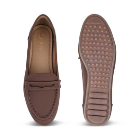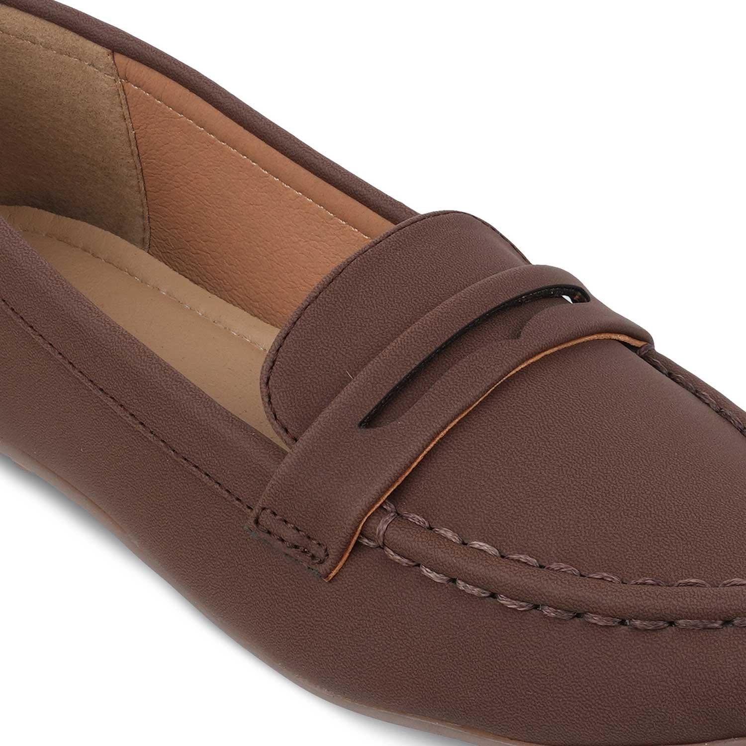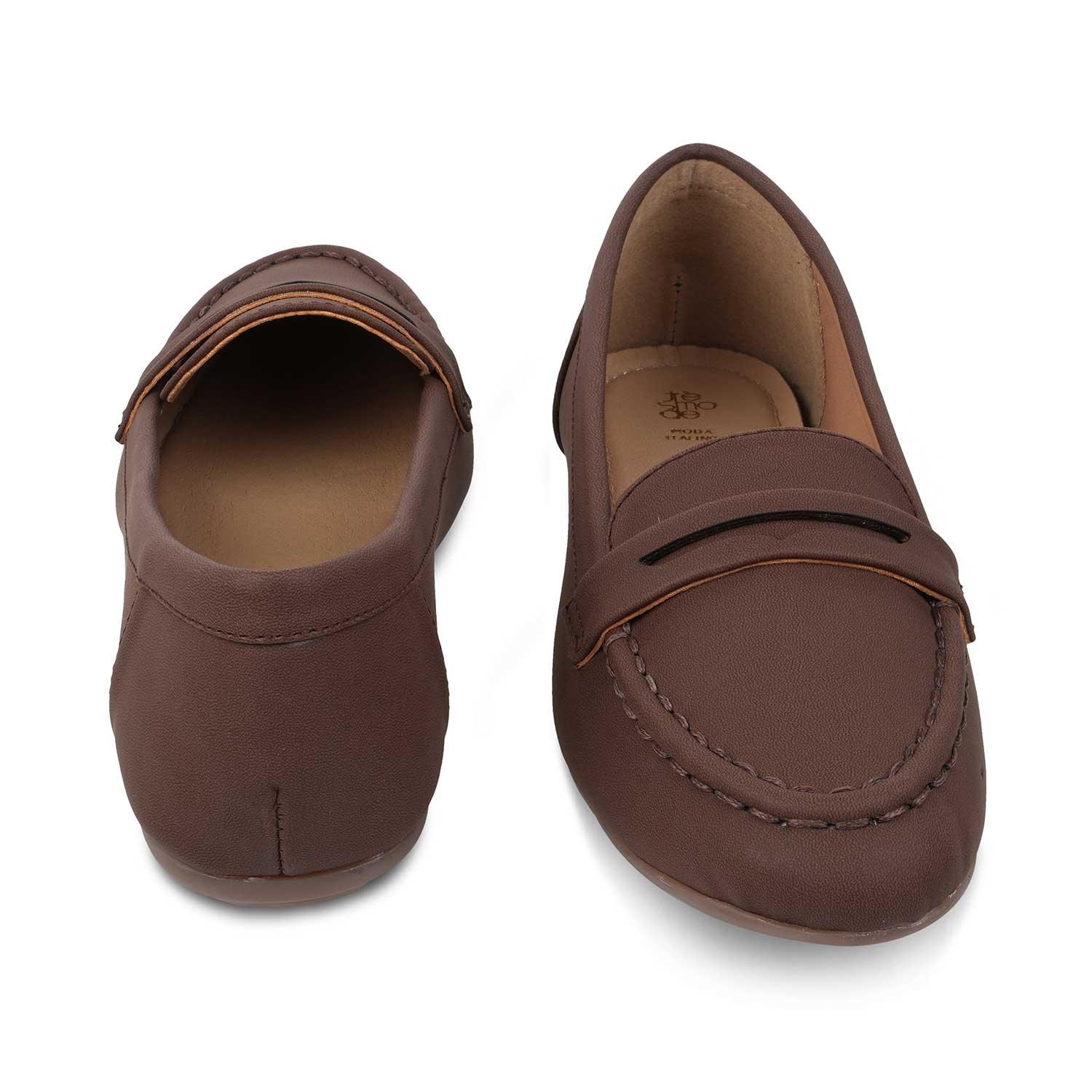 Ace your everyday look with our Snap brown women’s loafers. This pair strikes the perfect balance between fashion and functionality. You can safely ditch the heels and opt for these loafers for a comfortable stylish look. Style them with a brown and white polka-dotted top and a beige skirt.